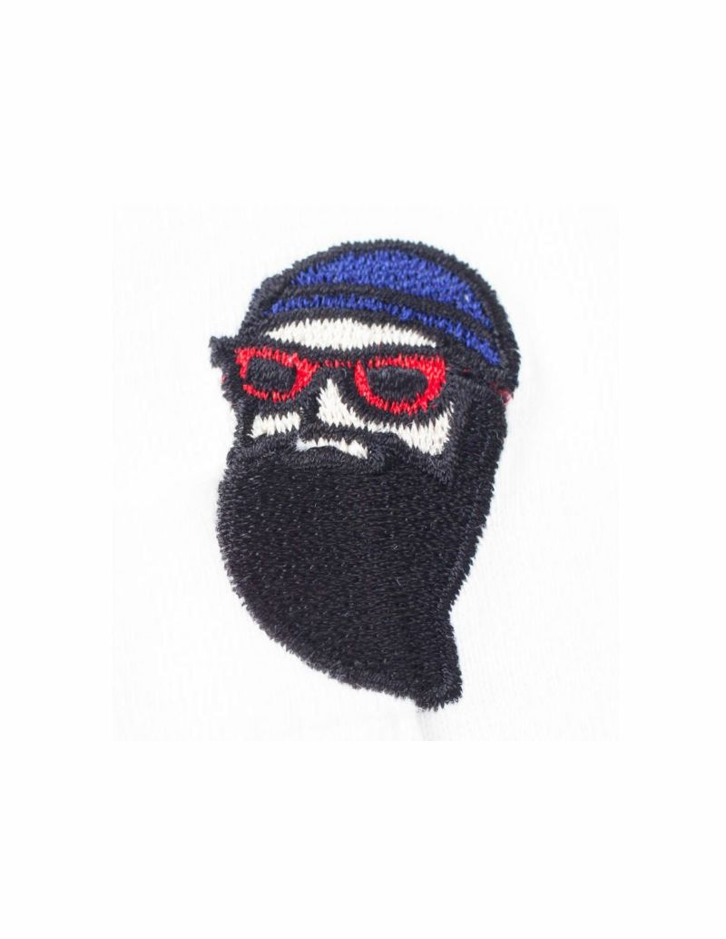 何とも言えない愛らしさのオジサンが胸ポケット上部に刺繍されており、ユニークなアクセントを添えています。