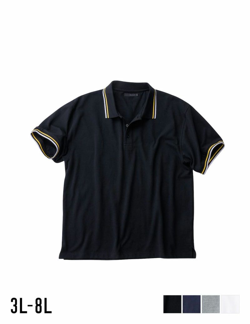 【大きいサイズ メンズ】鹿の子 ライン リブ 衿 抗菌 消臭 サイドスリット 半袖ポロシャツ 3L/4L/5L/6L/7L/8L/