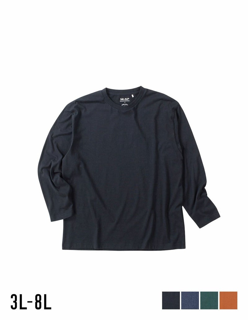 【大きいサイズ メンズ】オーガニックコットン クルーネック 長袖 Tシャツ カットソー 3L/4L/5L/6L/7L/8L/