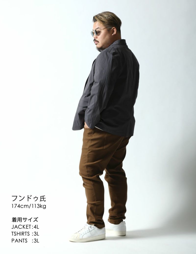 薄手でサラっとしているので春夏でも着用でき、シワの風合いが楽しめる生地を使用。ストレッチも効いています。