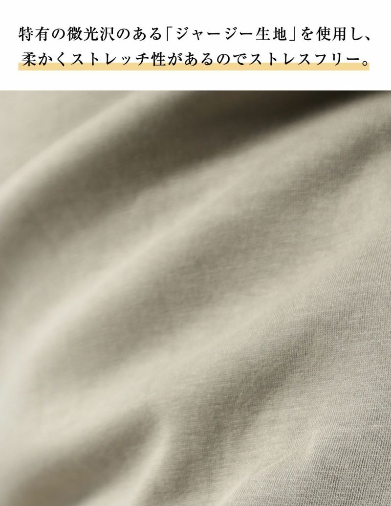 特有の微光沢のある「ジャージー生地」を使用し、柔かくストレッチ性があるので着心地抜群。