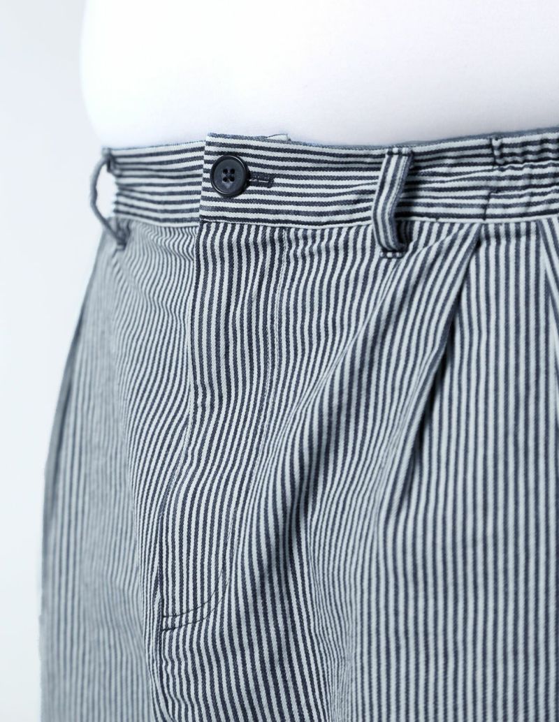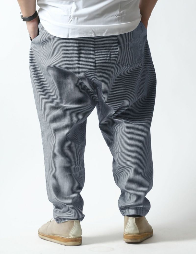 主張し過ぎないヒッコリーストライプ柄で大人のカジュアルセットアップなので、インナーにTシャツやシャツなどを着れば簡単にコーデが完成します。