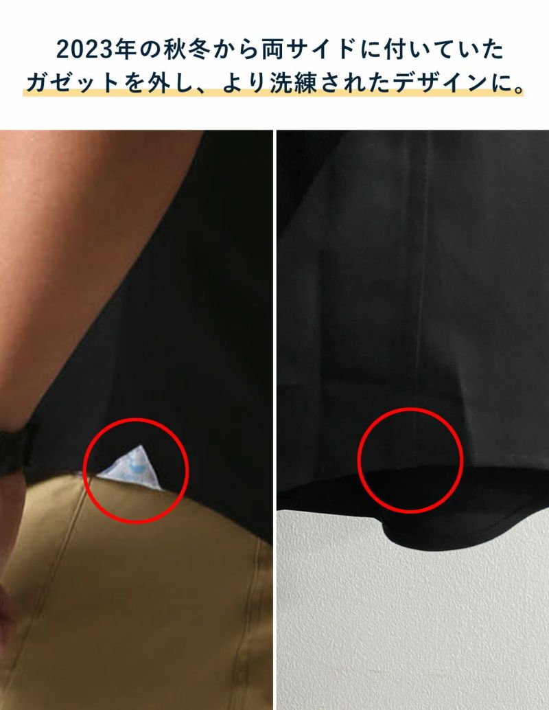 小ぶりな襟で、スマートな印象はそのままに、ポケットをなくすことでより大人な印象に。ネイビー・ピンク・ブラックも加わり、前作よりもグレードアップしました。
