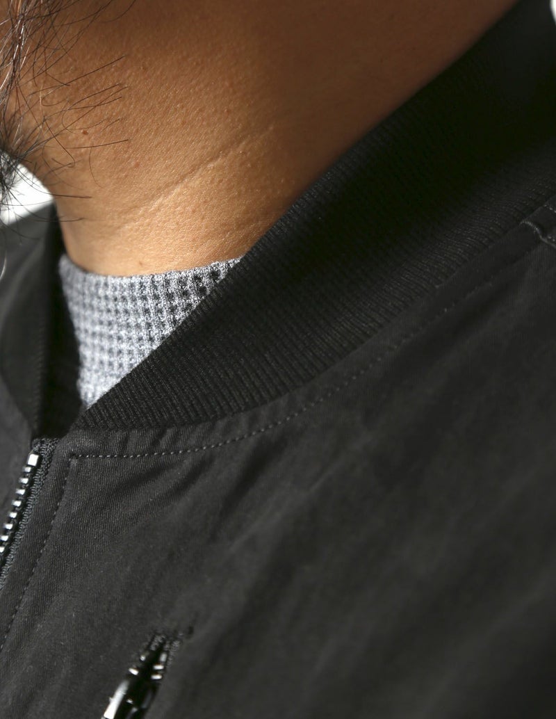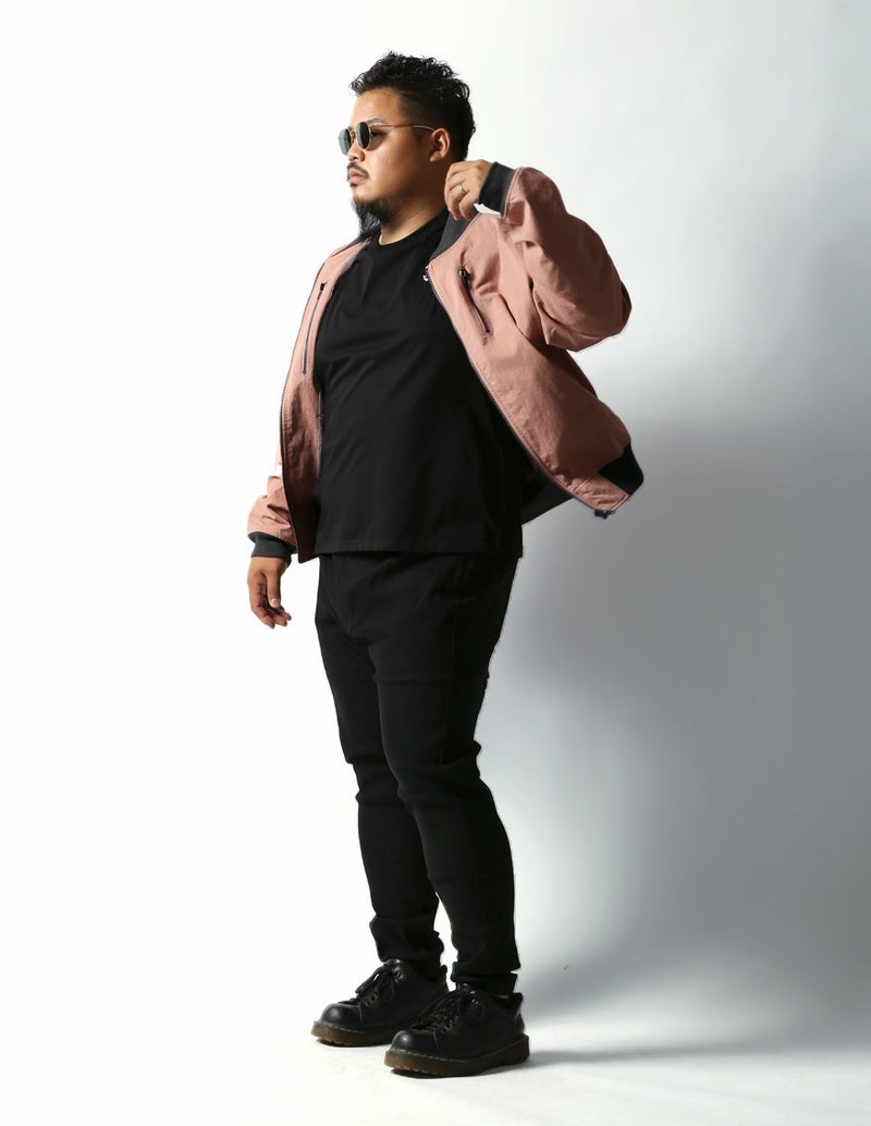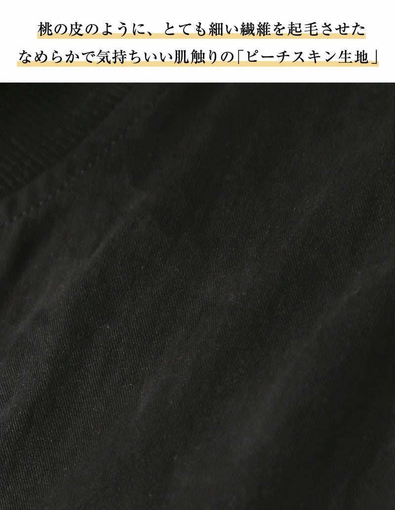 MA-1によくあるツルツルの生地ではなく、桃の皮のようにとても細かい繊維を起毛させたなめらかで気持ちいい肌触りで、ずっと触っていたくなる「ピーチスキン生地」を使用。