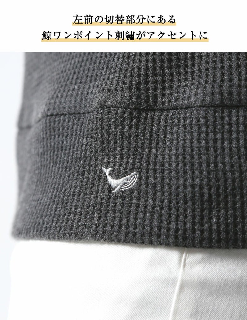 左前の切替部分にある鯨ワンポイント刺繍が遊び心あるアクセントに。