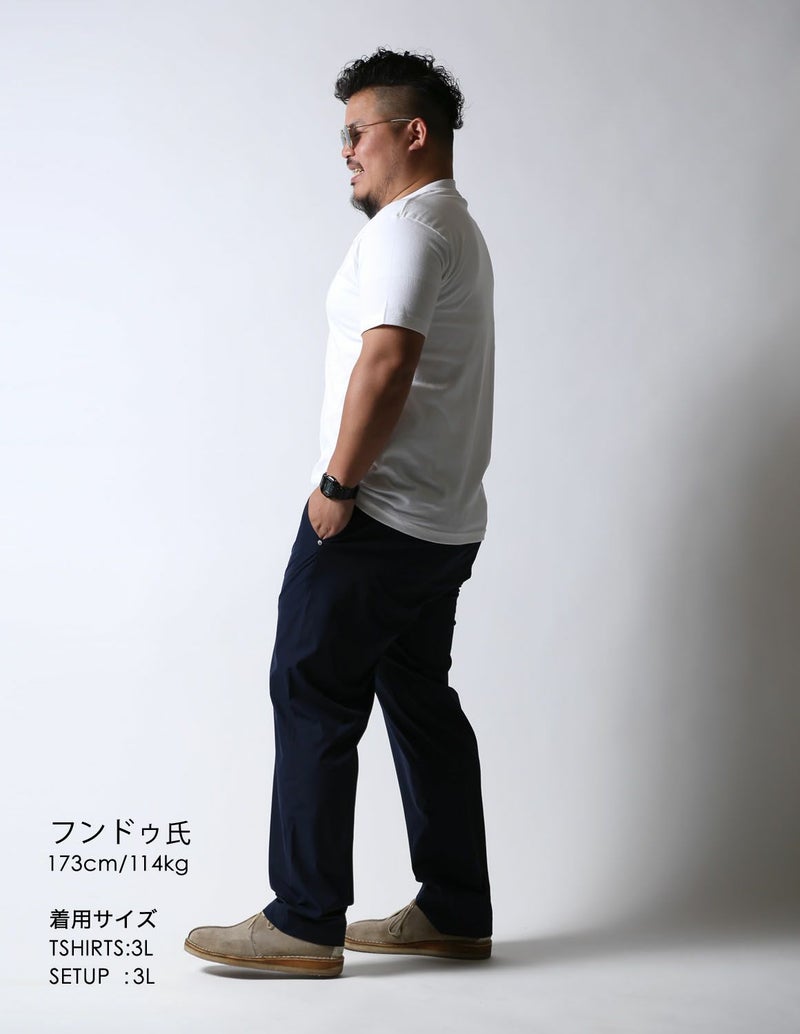 夏でもサラッと着られる薄手で伸縮性が抜群の生地を使用。