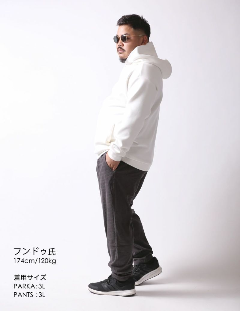 素材?生地?が気持ちよくて履き心地最高です!シルエットもゆるっとしているけどダラしなくなく、カッコイイです!ウエストも紐があって丁度良いです。もうすこしゆるっと履きたいなら3Lでもいいかも。この秋冬には最高のズボンですね!