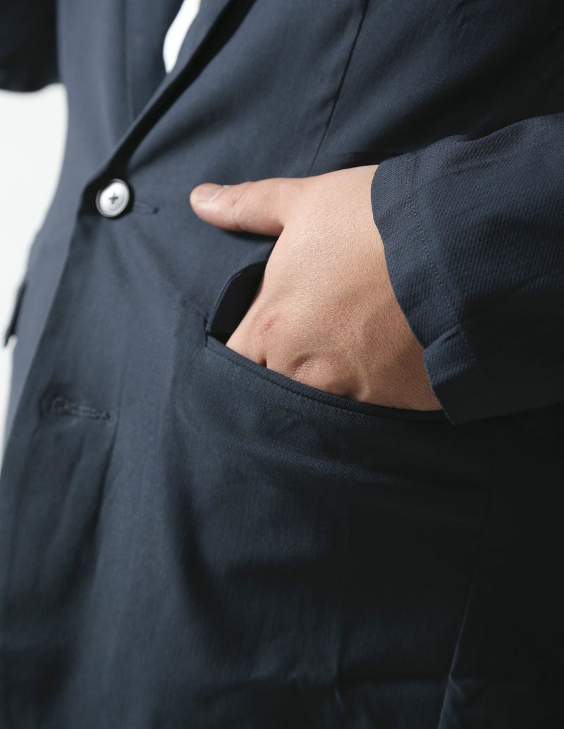 ビジネスや結婚式の参列などのフォーマルなシーンはもちろん、楽な着心地なのでカジュアルなシーンにもオススメです。同じ生地のパンツとあわせてセットアップとしても使用できます。