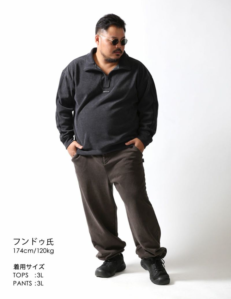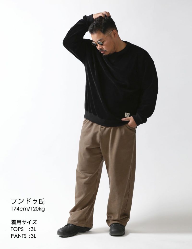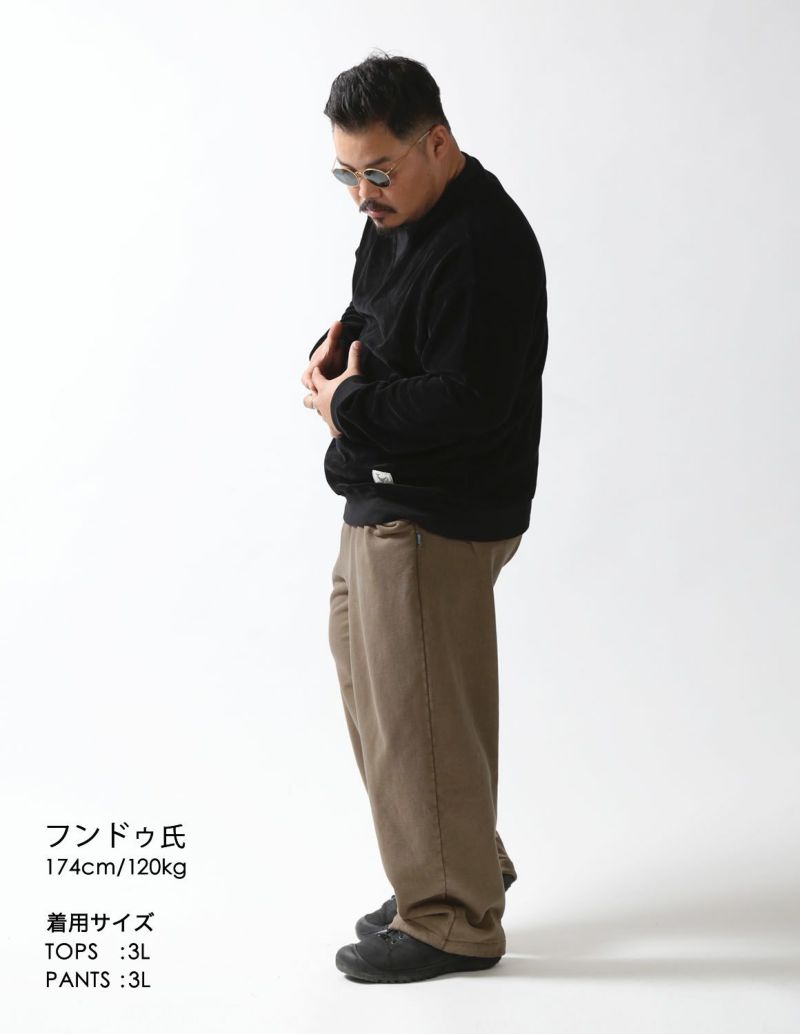 スウェットやシャツなどトップスを選ばず着回しやすく、同じ生地の「フェードパーカー」と組み合わせてセットアップとして着ることができます。