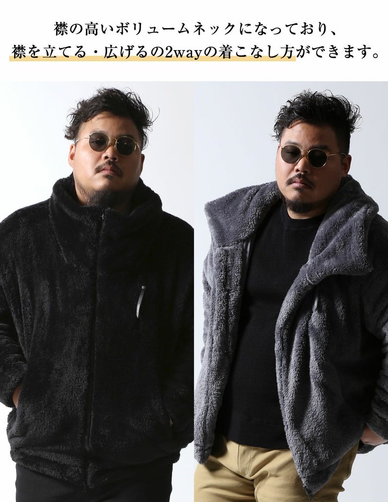 ハイネックの襟が特徴的で、ZIPを閉じて襟を立てて・開けてハイネックをねかせて襟にすることができる「2way ボリュームネック 極ボアアウター」が登場。