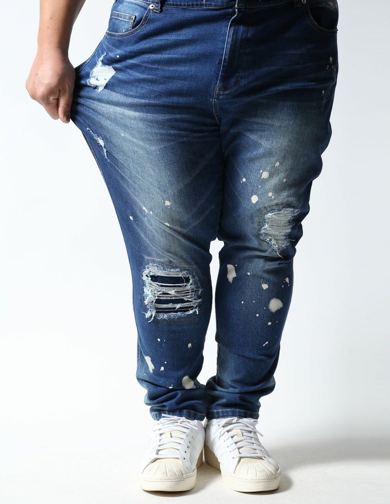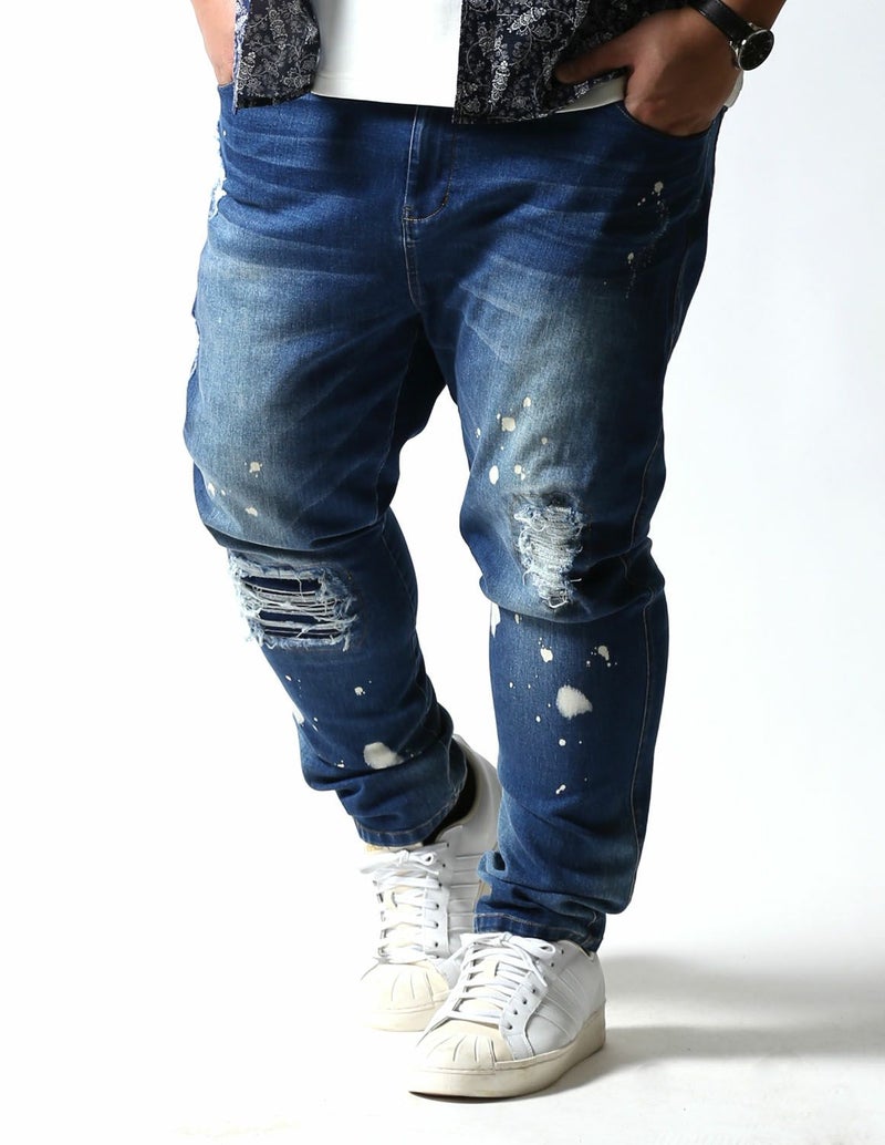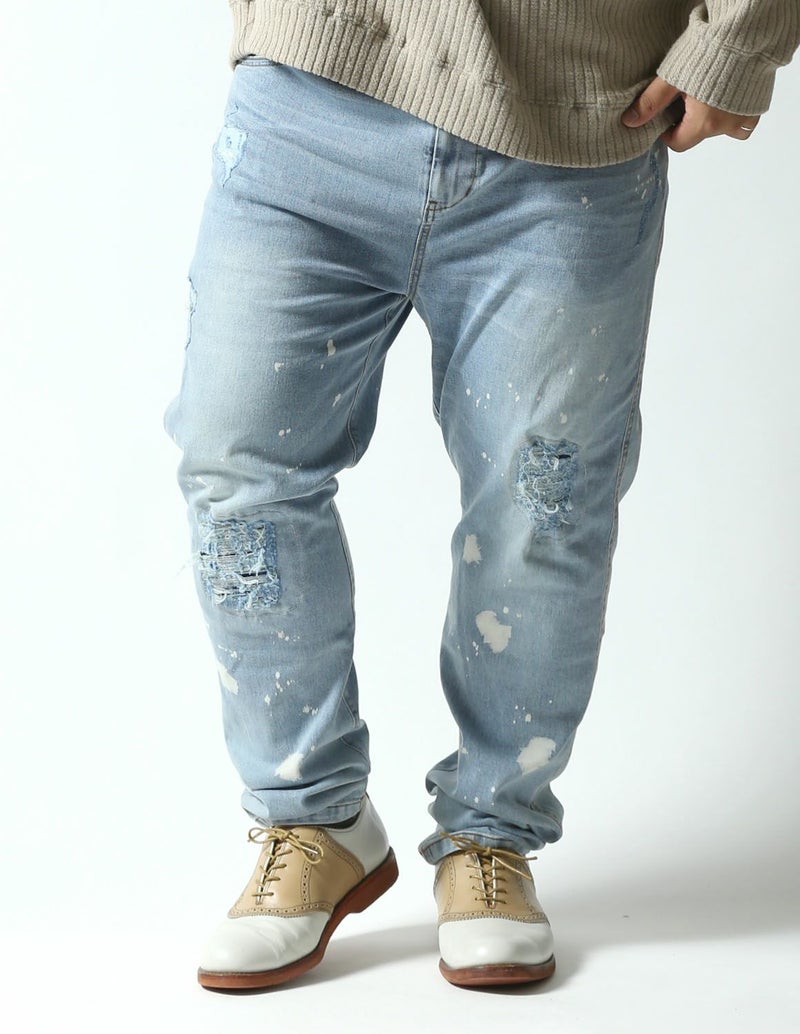 ダメージドクラッシュ加工に加え、ペンキ、ヒゲ加工など程よいユーズド感で色気ある仕上がり。