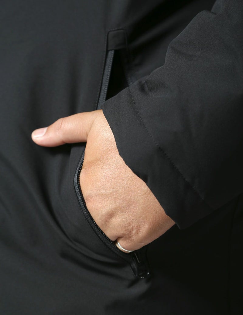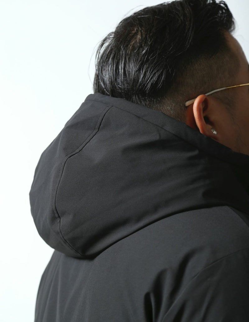 高さのあるネックがデザインと防寒性も兼ね備えています。