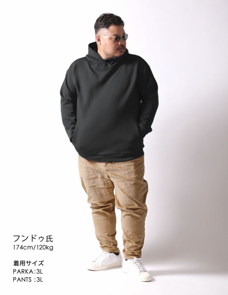「174㎝」「112kg」「普段3〜4L」「購入サイズ4L」ワイドでありながら、足元がテーパードされているため、脚をきれいに見せてくれる点が魅力です。特に腰回りに余裕があるので、体型を気にせず着用でき、動きやすさも確保されています。おしゃれに見えるだけでなく、体型カバーにも適しています。リラックスした履き心地とスタイリッシュな見た目を両立させた、秋冬にぴったりのパンツです。コーデュロイ素材の温かみや高級感、そしてワイドテーパードの美シルエットが、日常から少しフォーマルな場面まで使える幅広いコーディネートに対応してくれます。ゆったりとしたパンツが好きな方や、動きやすさとデザインを両立したい方に非常におすすめです。