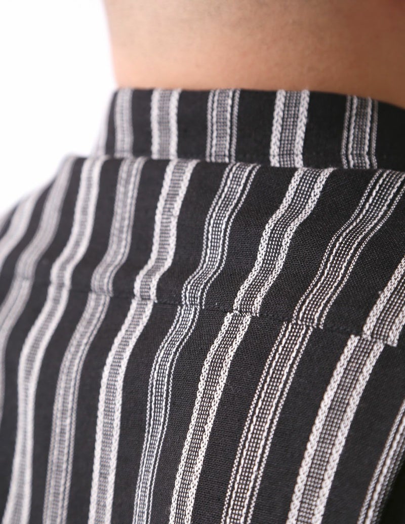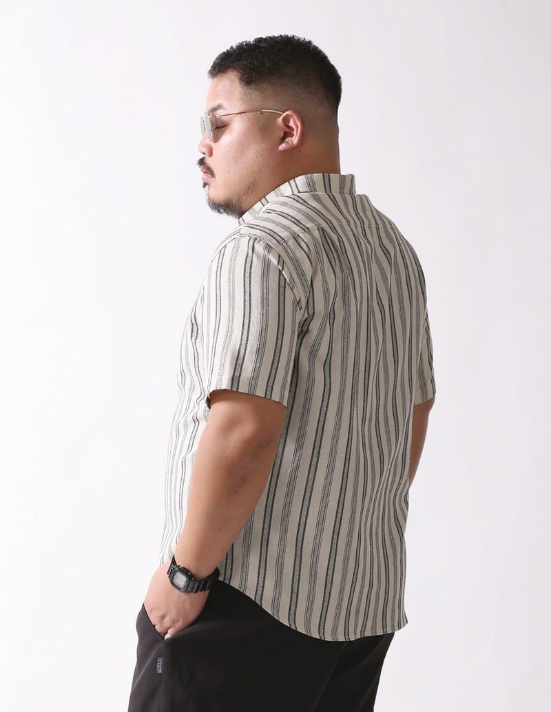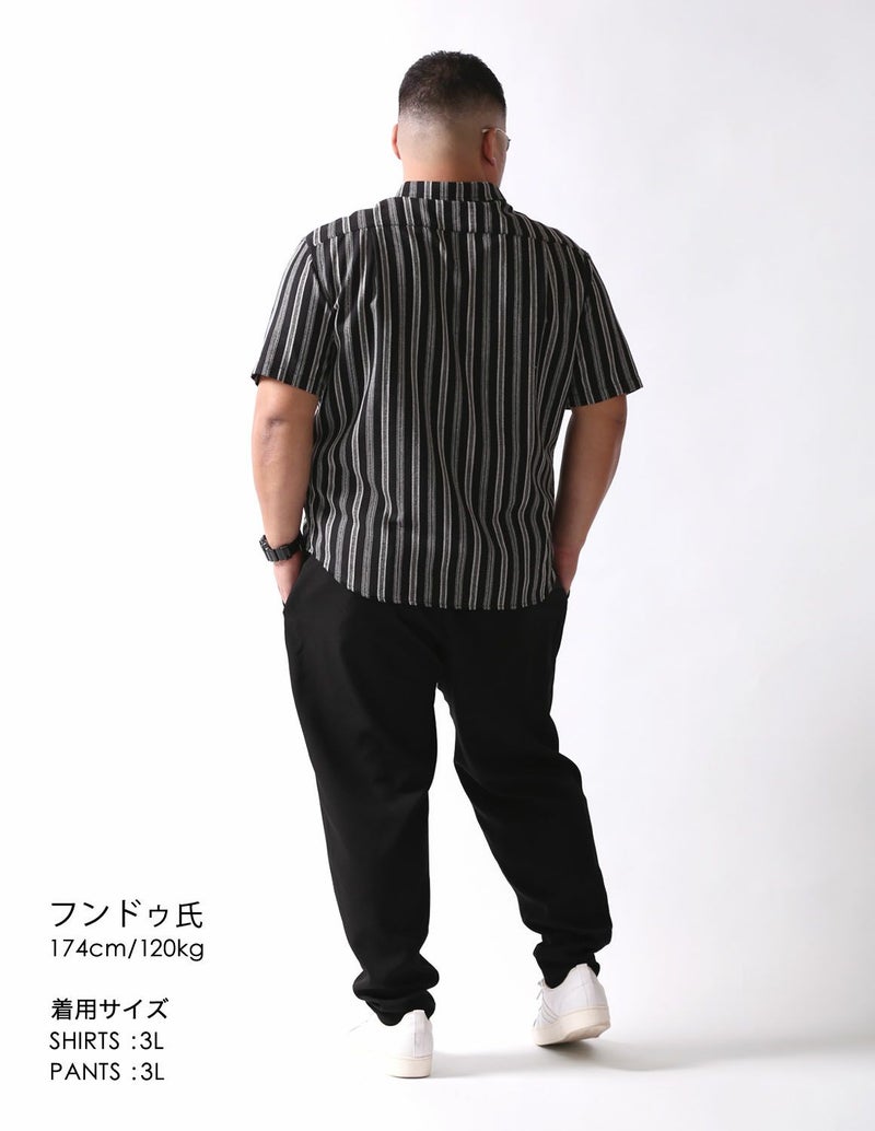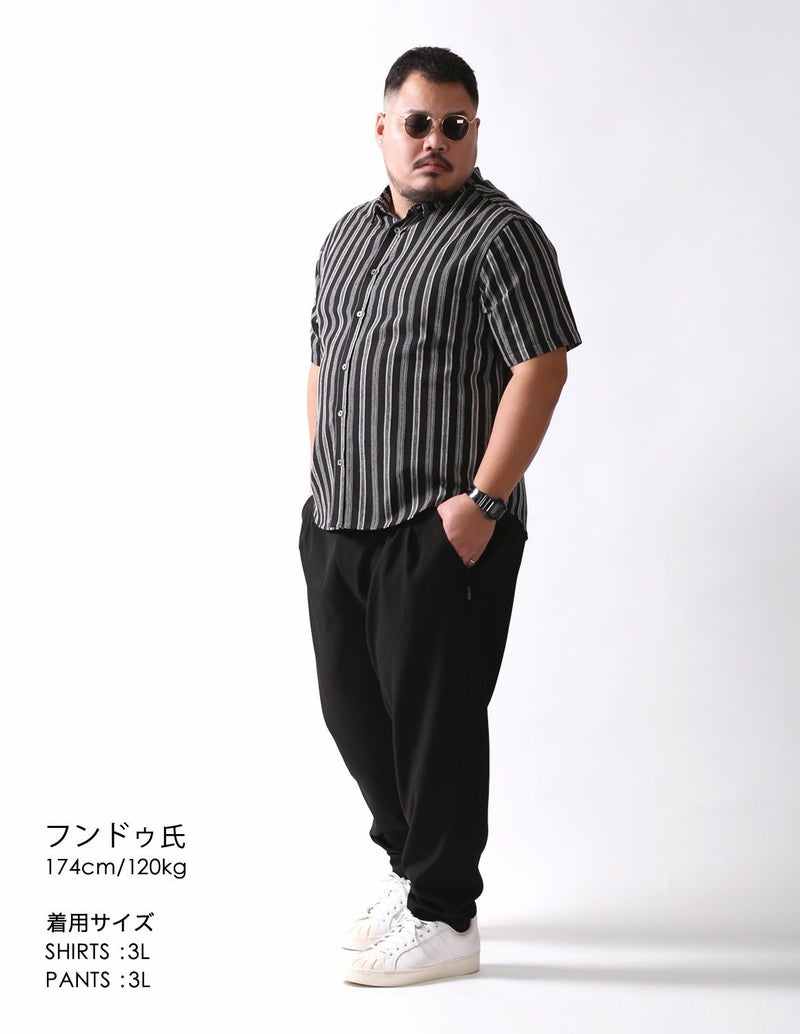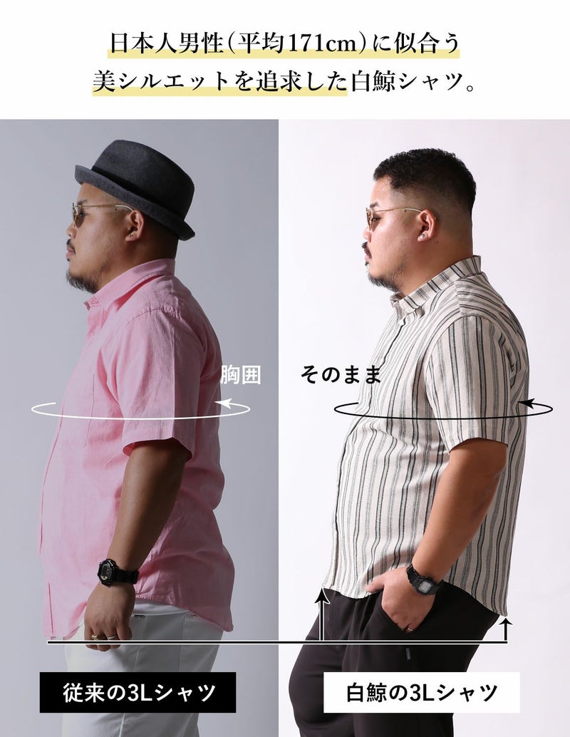 白鯨 Undulate 半袖シャツ ストライプ 麻 リネン ブラック3Lを購入