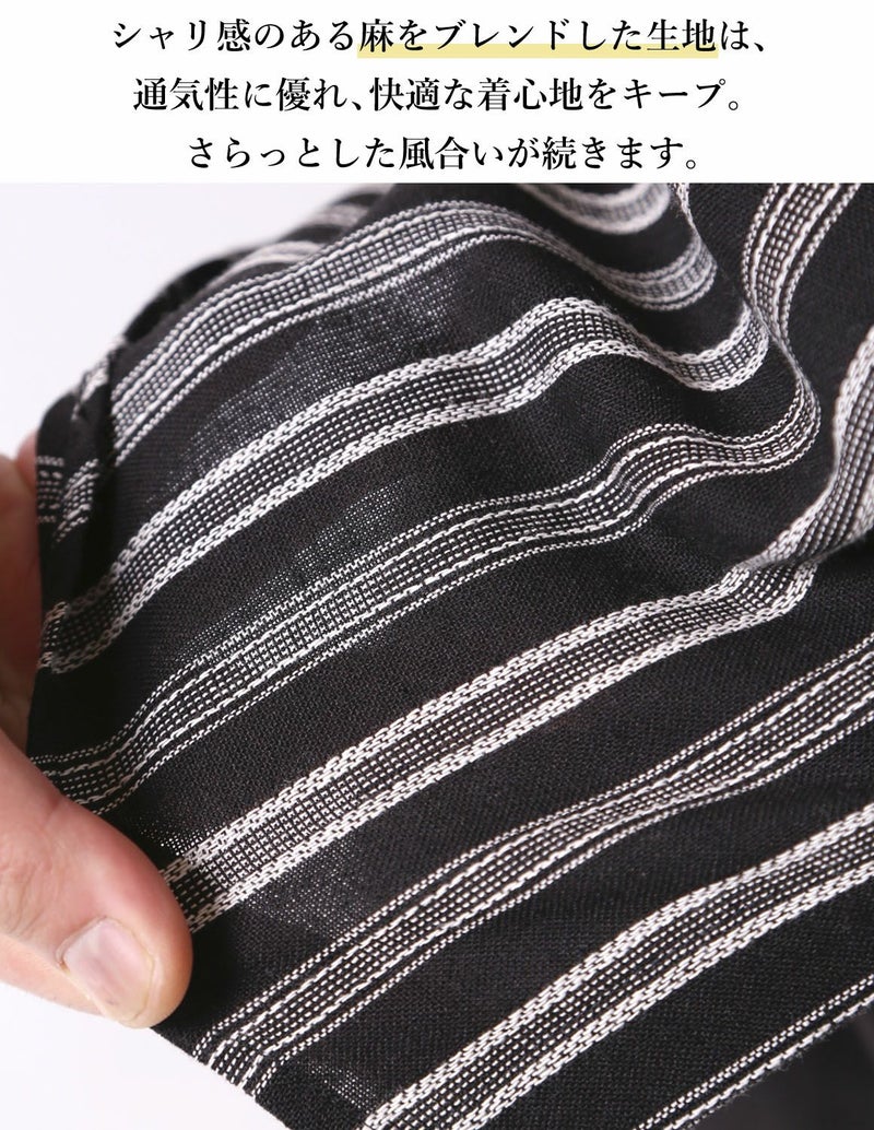薄手でリネン入りの生地で、春夏のコーデにぴったりです。ボタンを開けて羽織りとしても着られるので、幅広いスタイリングが楽しめます。