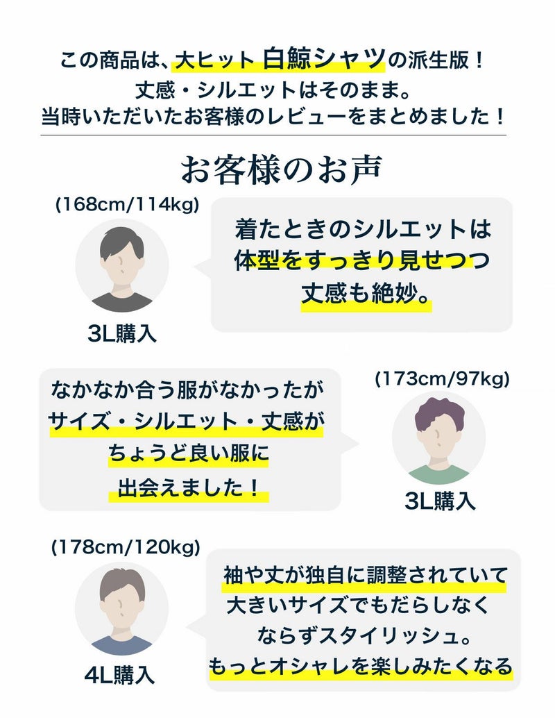 日本人男性(平均171cm)がシュッと見える、襟回り・袖丈・着丈を調節した大きいサイズの為のシャツ。