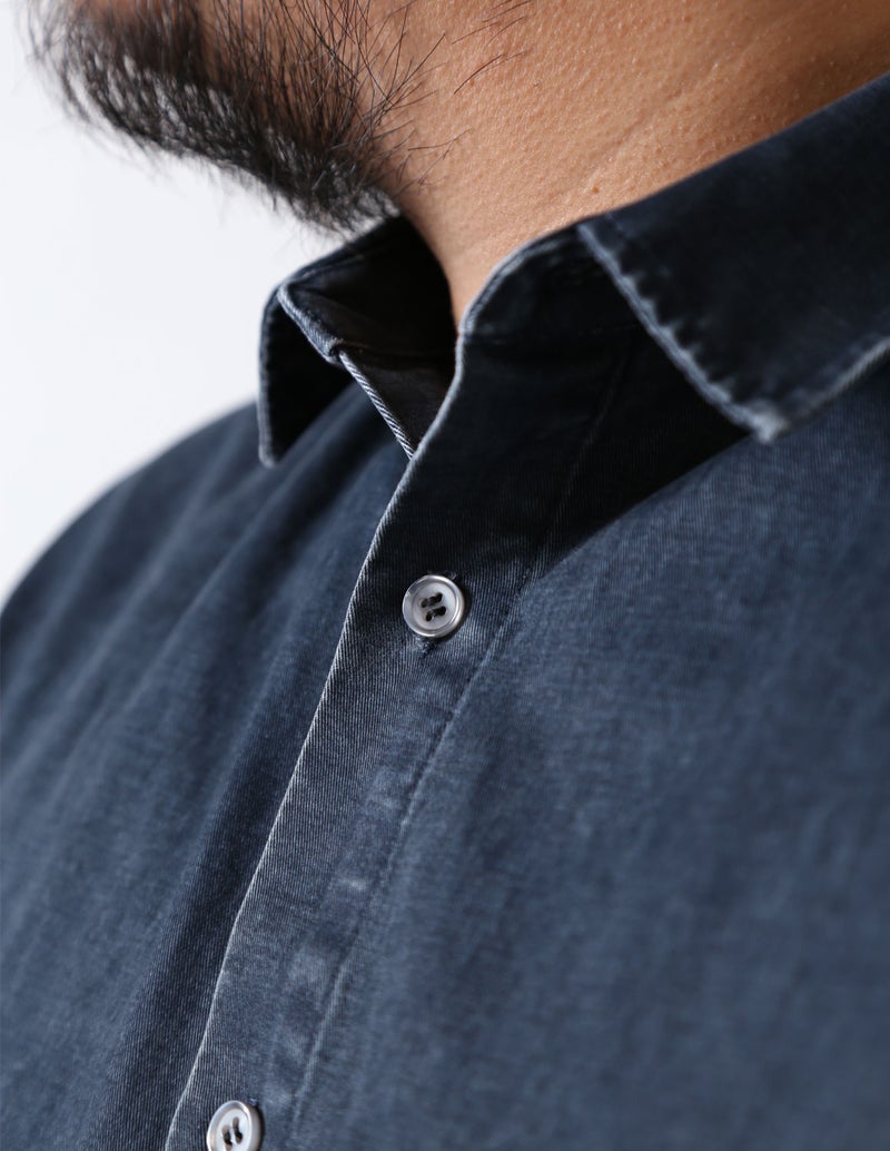 QZILLAの人気アイテム「白鯨シャツ」のNewバージョン。落ち着いた印象で、どんなコーデにも使えるカジュアルなシンプルデザイン。