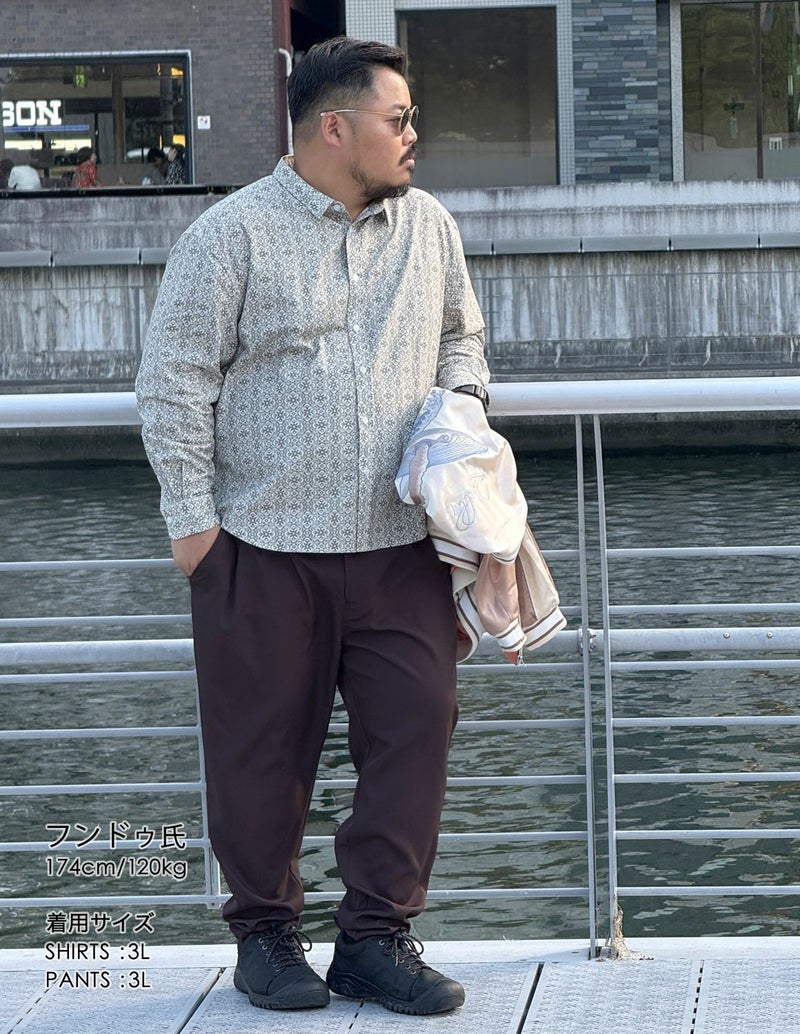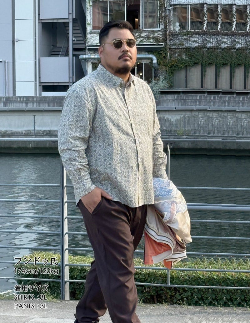 日本人男性(平均171cm)がシュッと見える、襟回り・袖丈・着丈を調節した大きいサイズの為のシャツ。