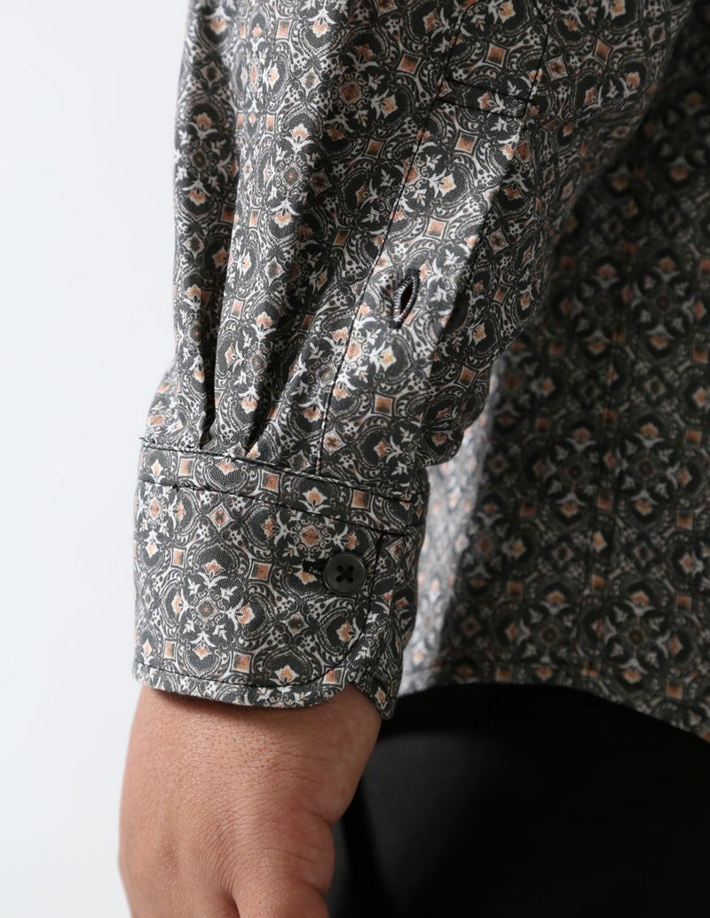QZILLAの人気アイテム「白鯨シャツ」のNewバージョン。幾何学パターンが特徴的なレトロを感じられる「白鯨 Retrogram」