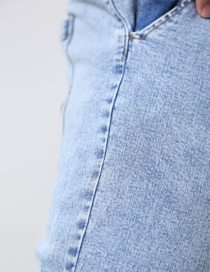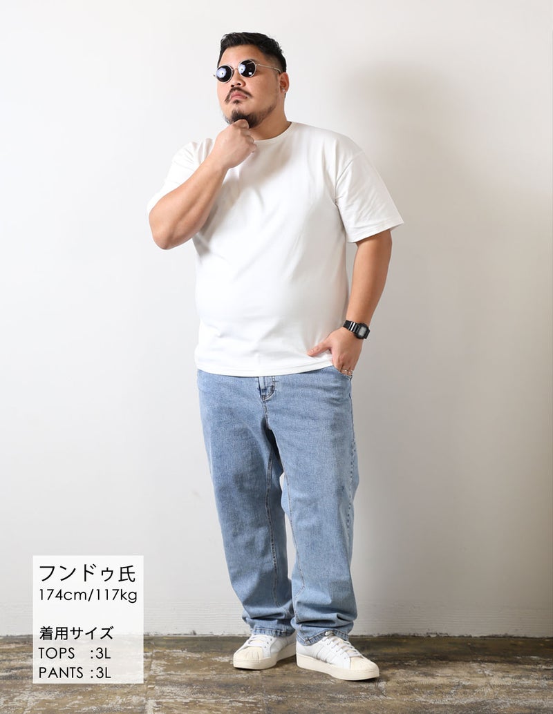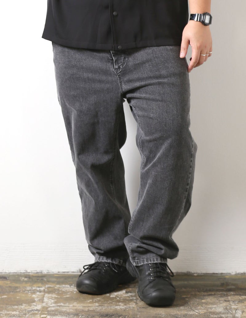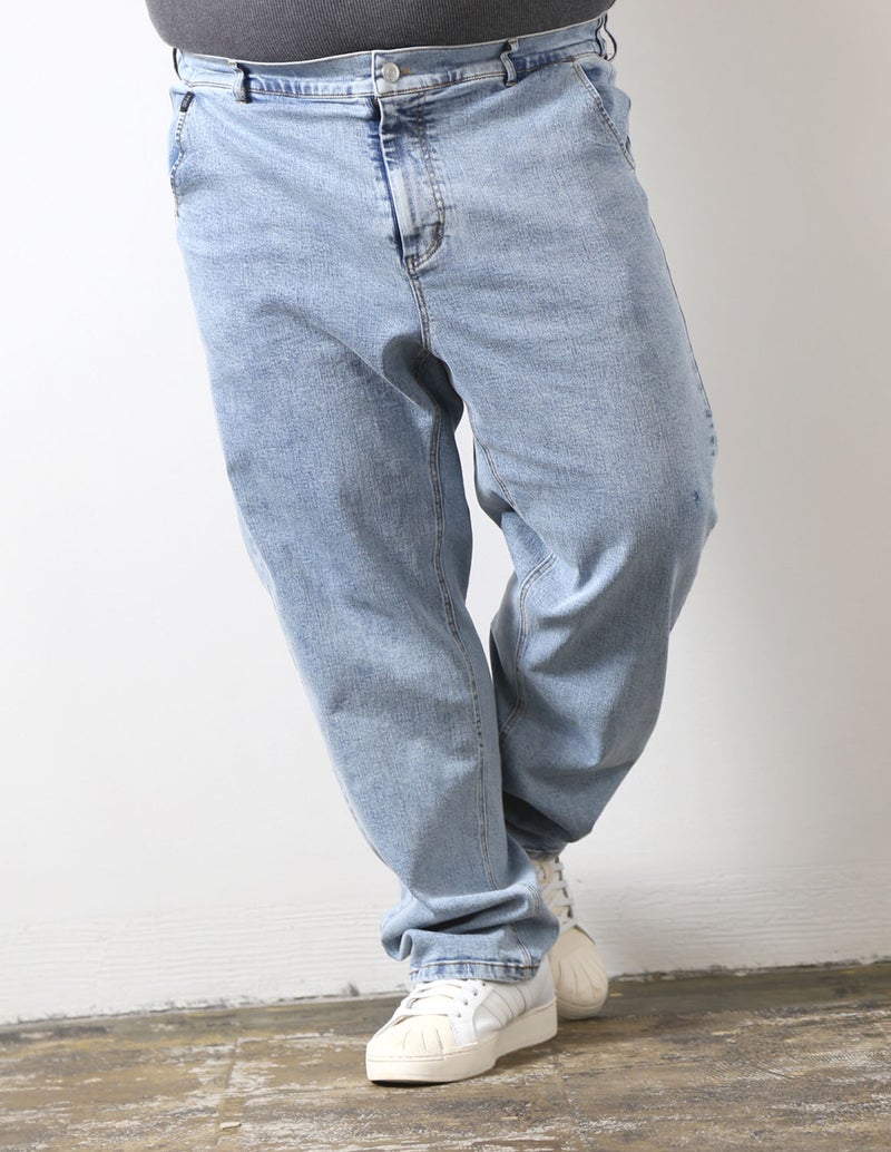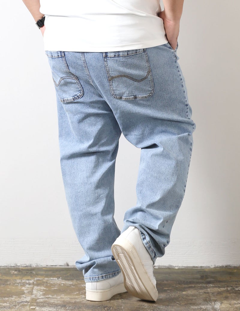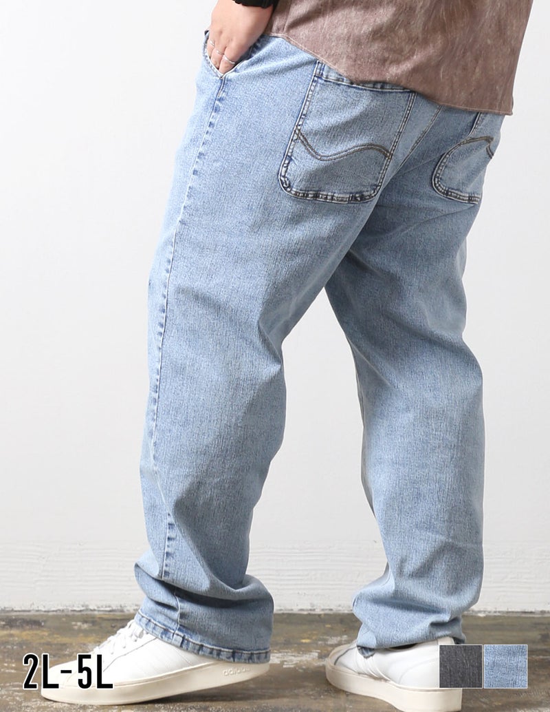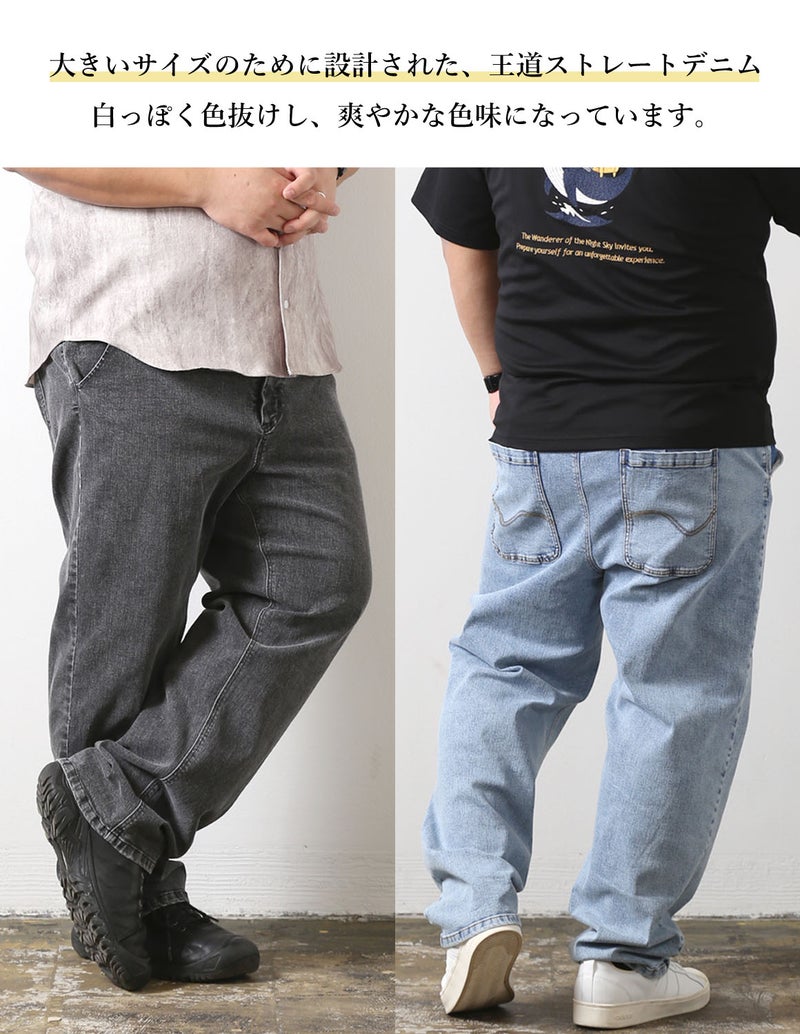大きいサイズ専用の美しいストレートシルエットで体型を拾いすぎず、すっきり見える絶妙なバランス設計。ストレッチ入りでストレスフリーな穿き心地でデニム特有の窮屈さを感じさせず、長時間でも快適。