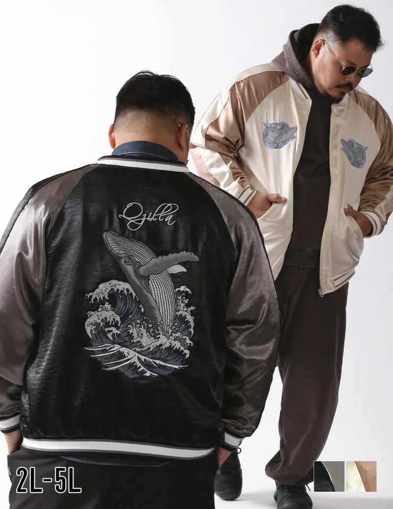 【大きいサイズ メンズ】 [QZILLA] 極鯨 スカジャン 鯨刺 生地切替 2L/3L/4L/5L