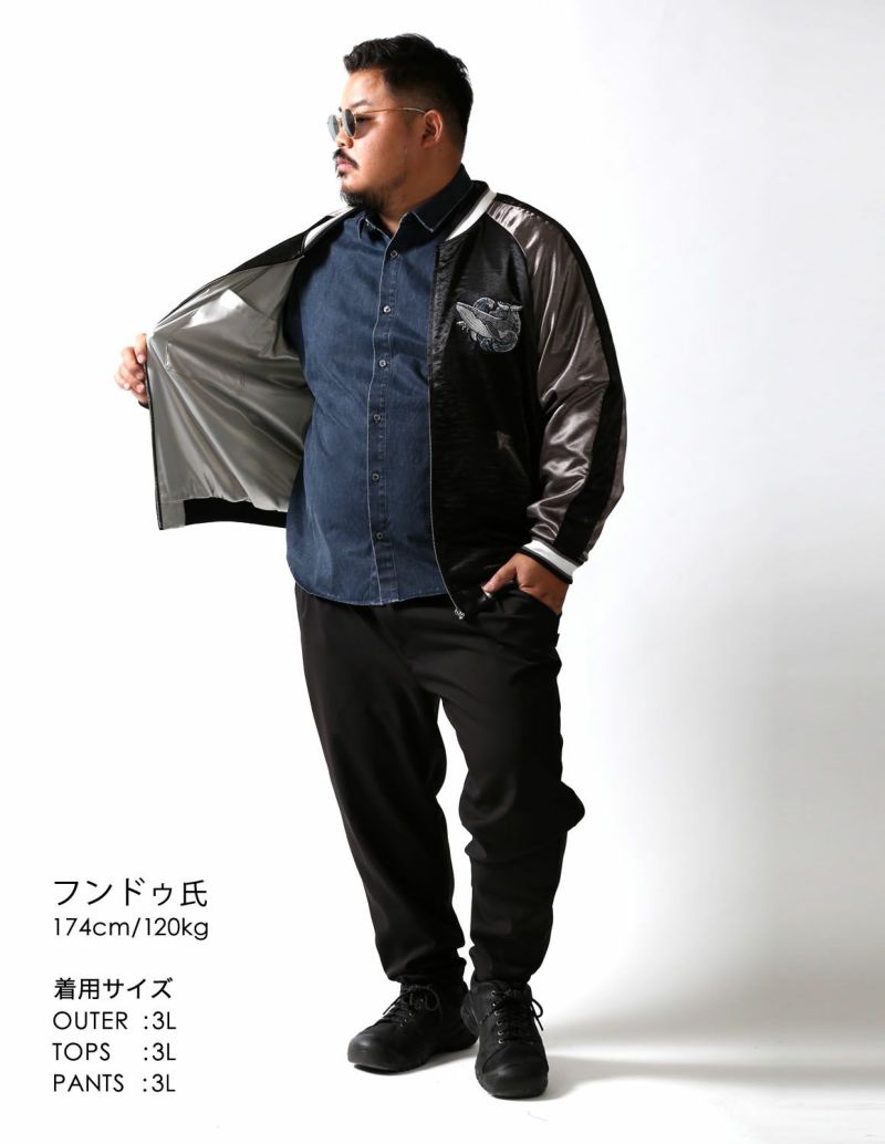 QZILLAオリジナルの今までありそうで無かった鯨の刺繍を背面と両胸にあしらった「極鯨スカジャン」