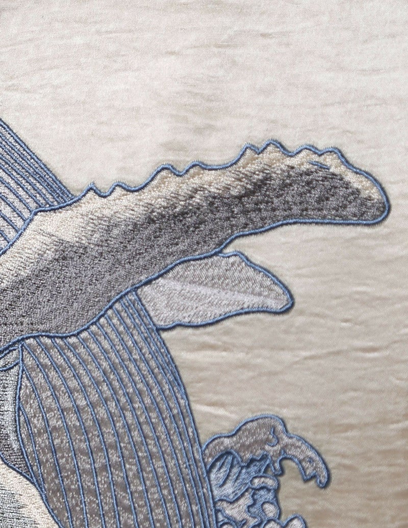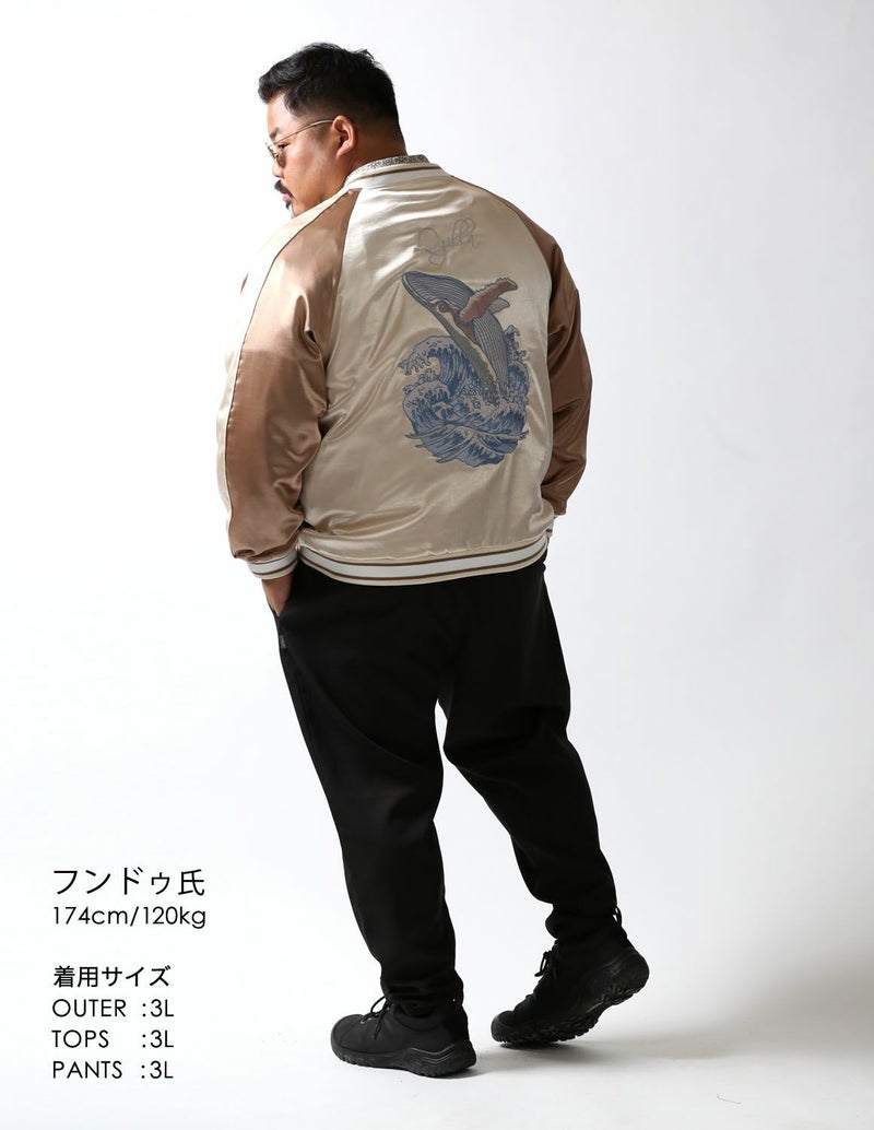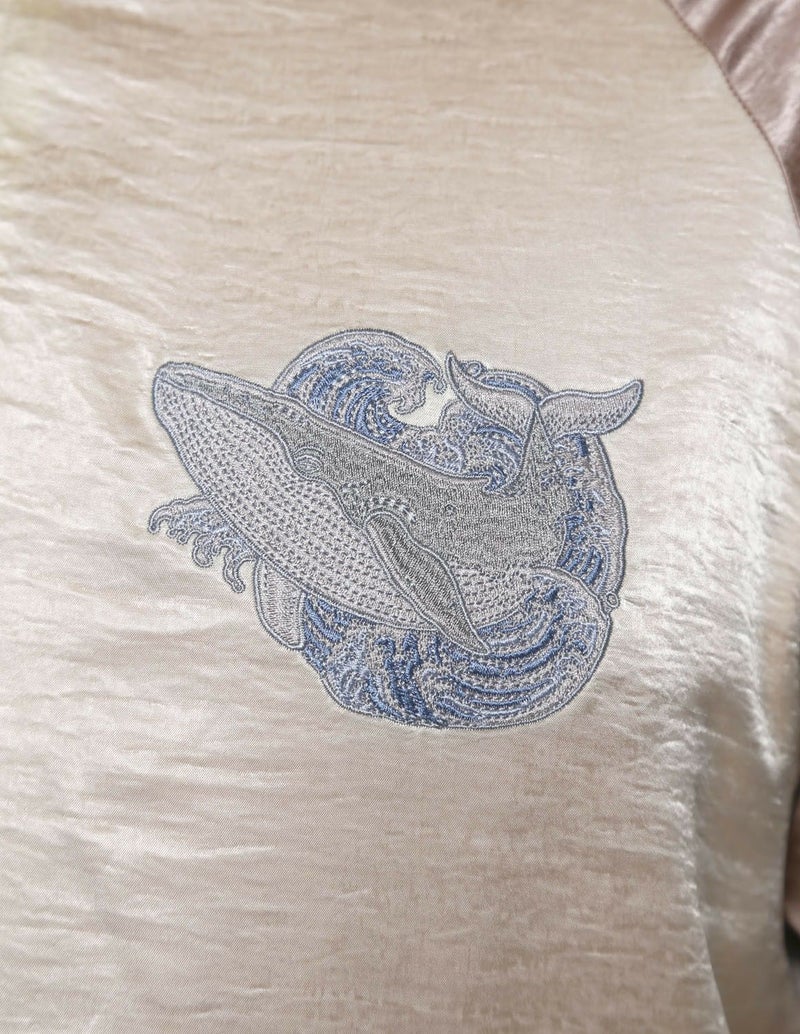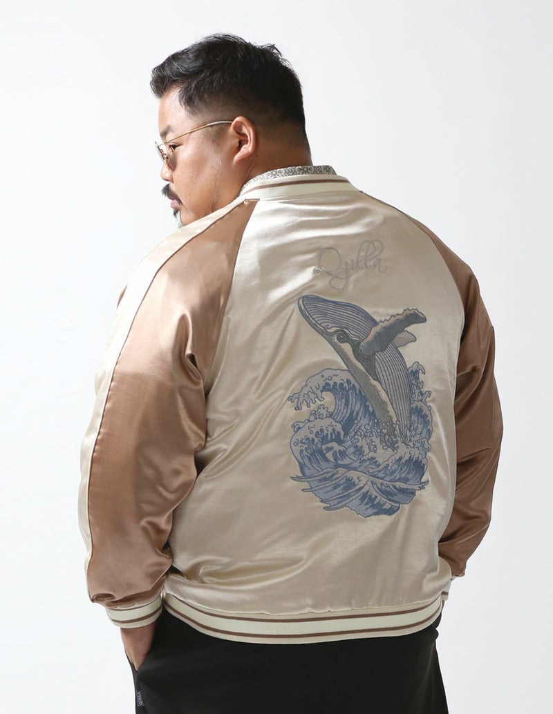 QZILLAオリジナルの今までありそうで無かった鯨の刺繍を背面と両胸にあしらった「極鯨スカジャン」