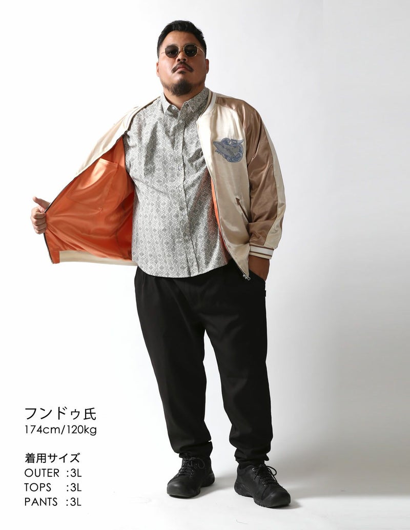 実際に届いて袖を通してみましたが180*100で3Lでゆったり目