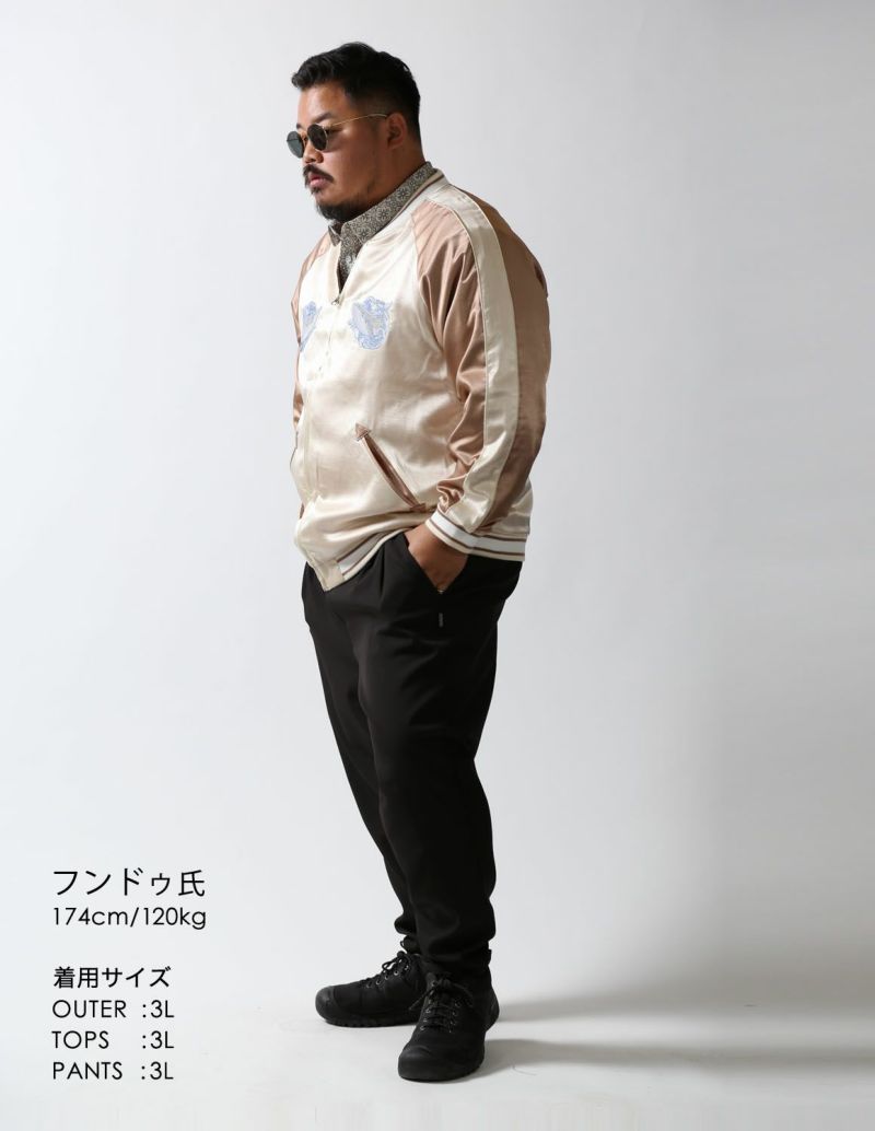 実際に届いて袖を通してみましたが180*100で3Lでゆったり目