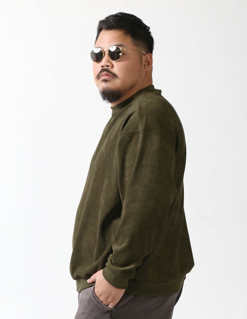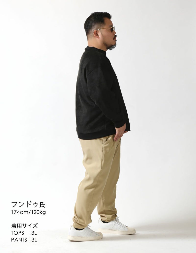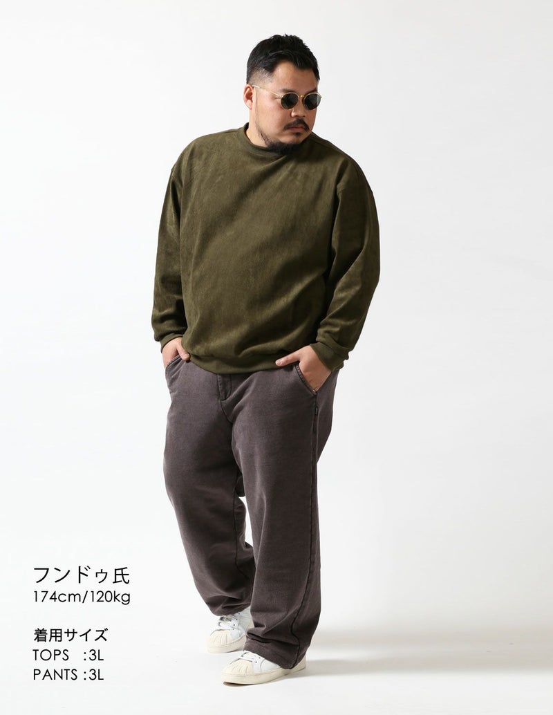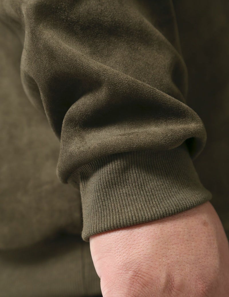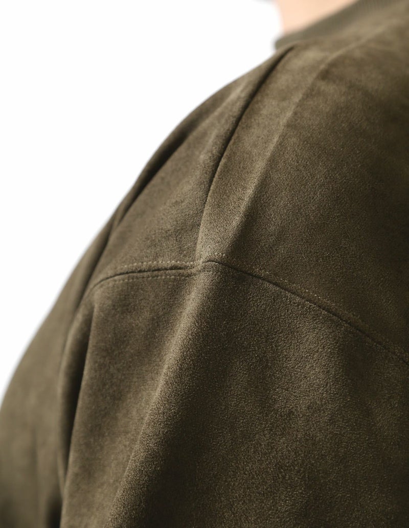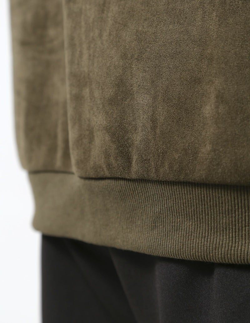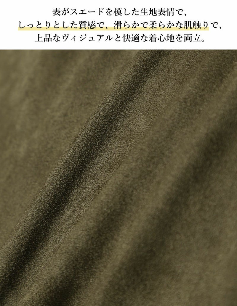 表がスエードを模した生地表情で、しっとりとした質感で滑らかで柔らかな肌触りで、上品なビジュアルと快適な着心地を両立。裏地は柔らかな起毛を施し、肌触りが良くラグジュアリー。