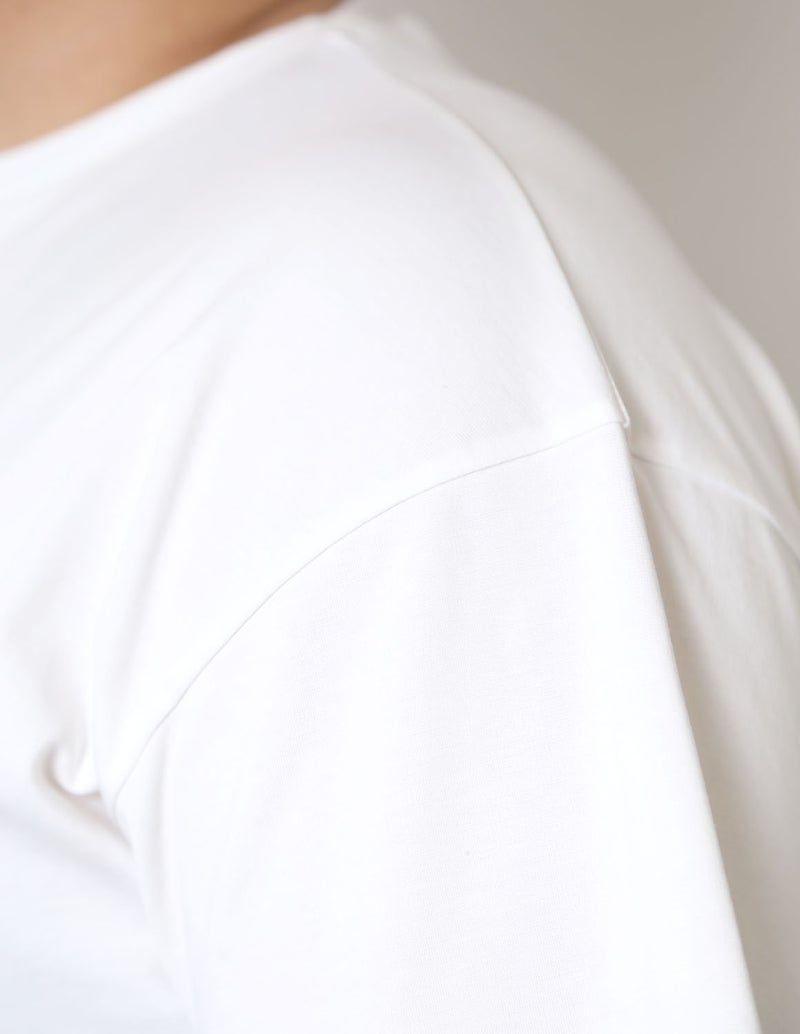S-line(ドロップショルダー仕様)で、ゆったりとした肩落ちシルエットに仕上げました。 体型を隠しつつ、ラフに着られる一枚です。