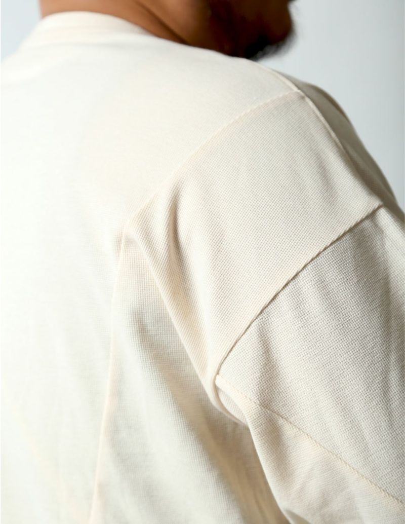 ワッフル素材をクレイジーパターンで仕上げる事により、主張の強過ぎないデザインに仕上げた「クレイジーナッツ切替」ロンTが登場。