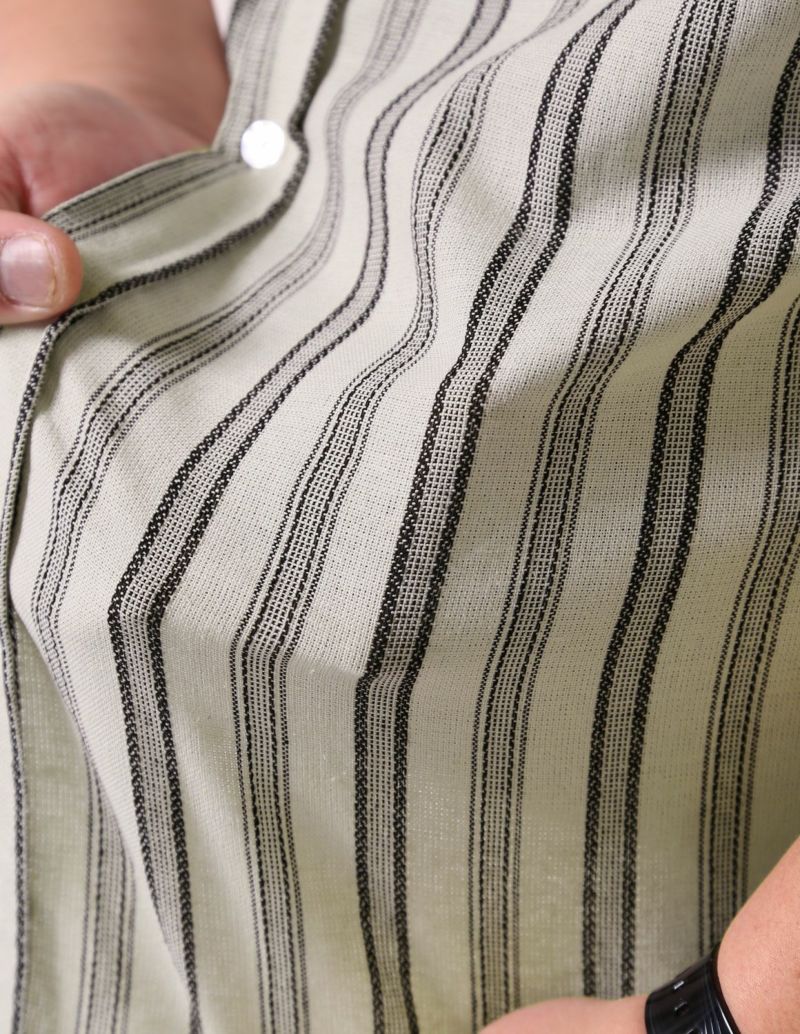 シンプルながらも洗練されたストライプデザインが魅力の半袖シャツ。大人の雰囲気を演出できる万能アイテムです!