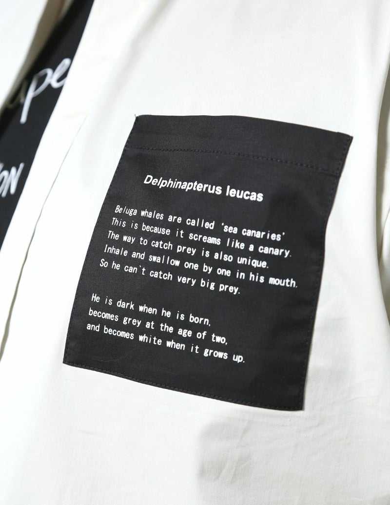 シャツのポケット部分と右袖のデザインがホワイトとブラックの切替になっておりコーデのアクセントになります。