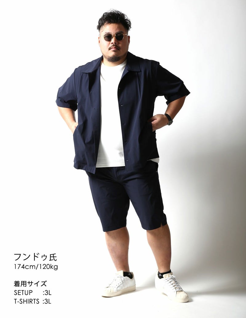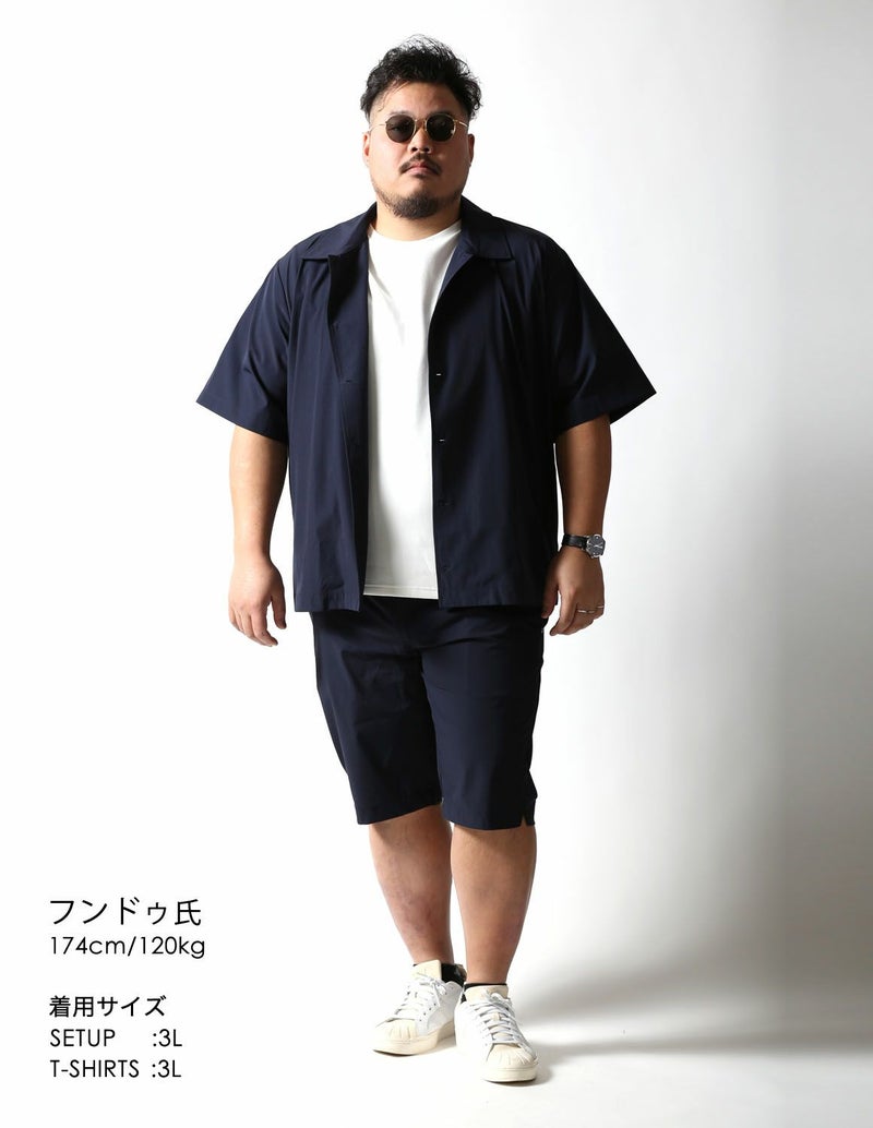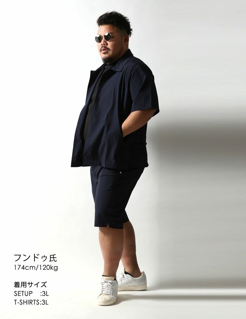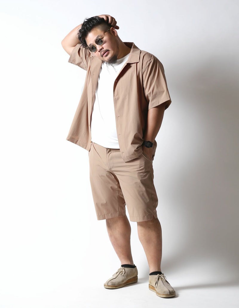 夏でもサラッと着られる薄手で伸縮性が抜群の生地をシャツジャケットとハーフパンツ両方に使用。
