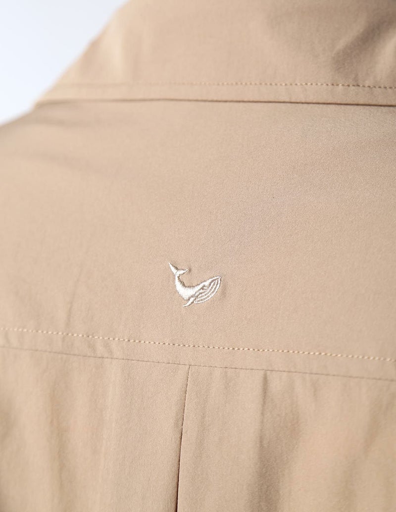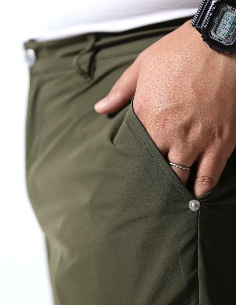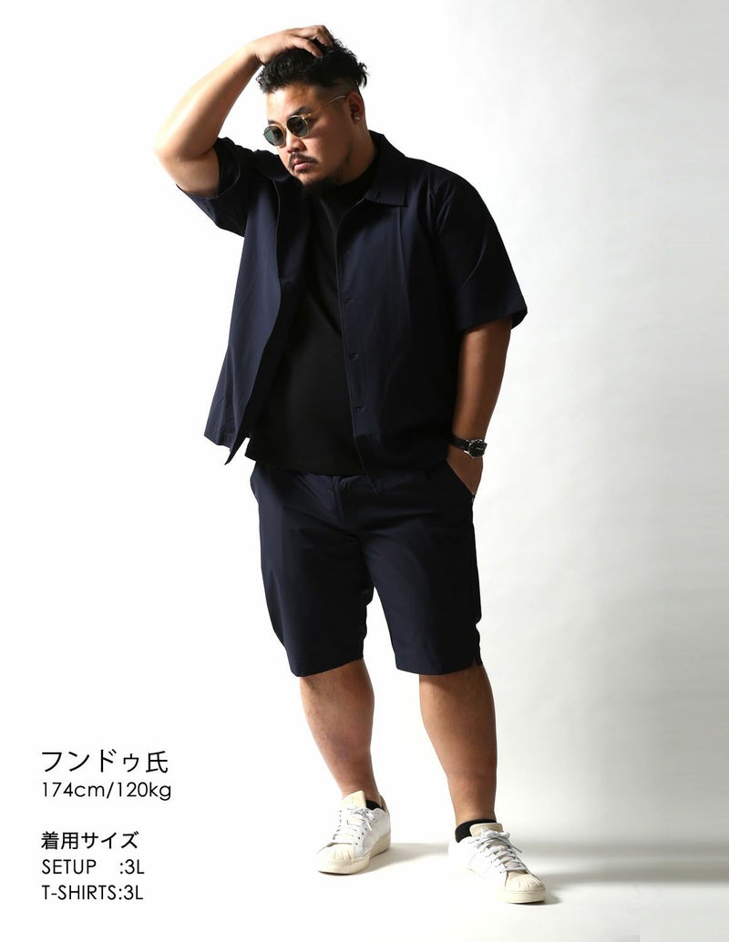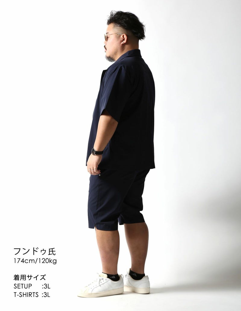 夏でもサラッと着られる薄手で伸縮性が抜群の生地をシャツジャケットとハーフパンツ両方に使用。