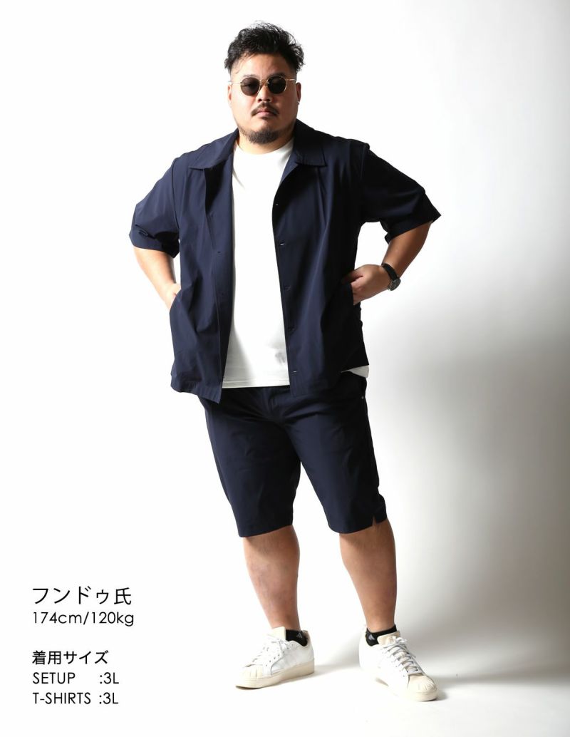 【大きいサイズ メンズ】威風サラサラ ストレッチ 半袖シャツジャケット ハーフパンツ セットアップ 2L/3L/4L/5L/