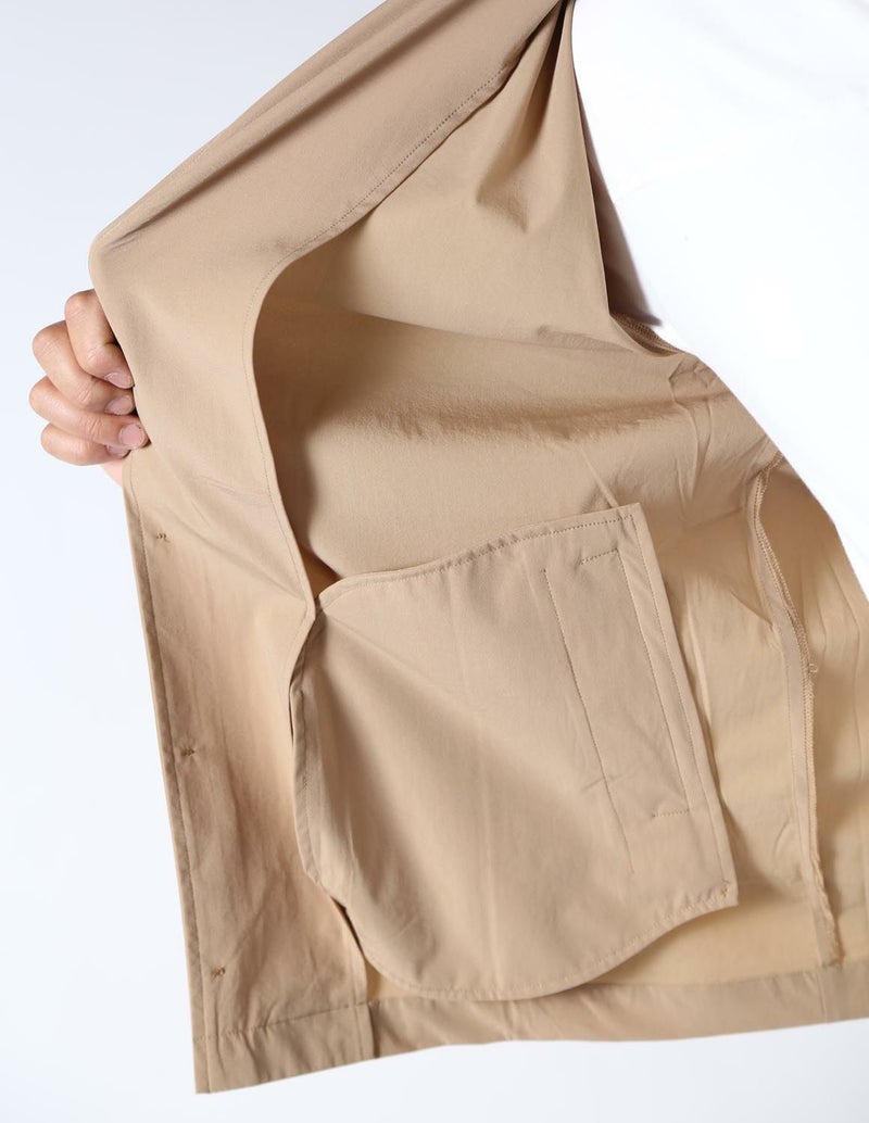 シャツはジャケットのように両サイドにポケットが付いており前を開けても閉じても決まります。