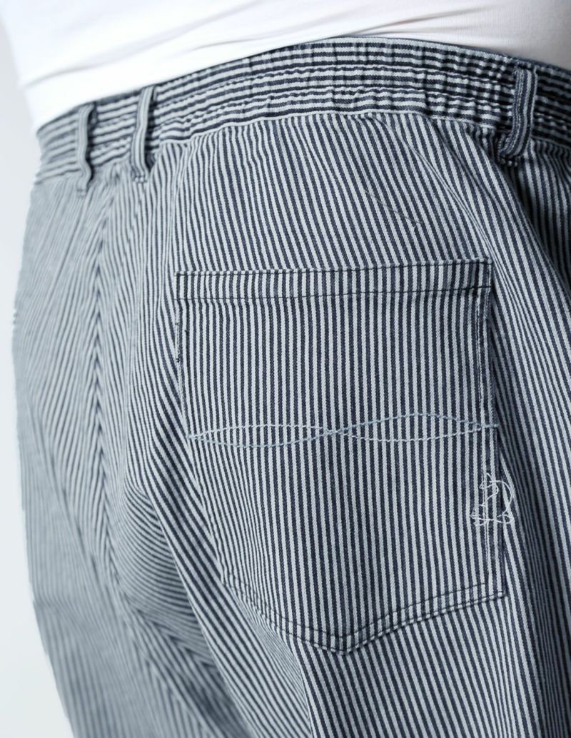 主張し過ぎないヒッコリーストライプ柄で大人のカジュアルセットアップなので、インナーにTシャツやシャツなどを着れば簡単にコーデが完成します。
