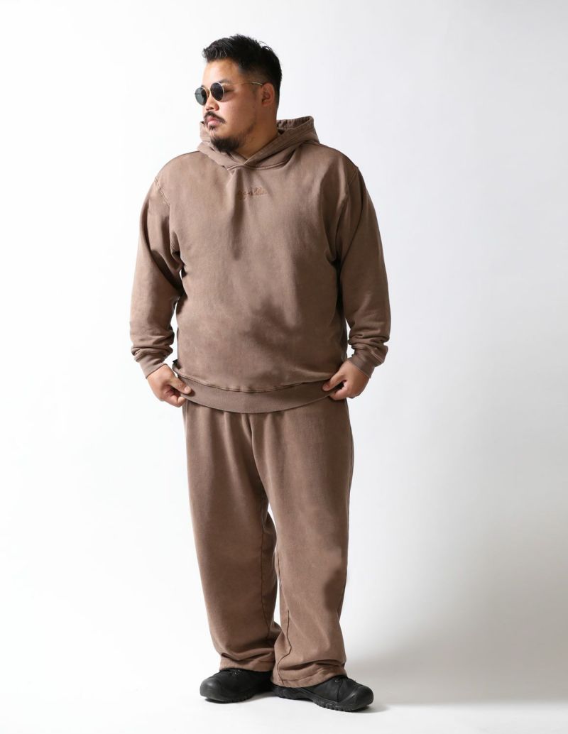 [予約販売!11月下旬発送予定]【大きいサイズ メンズ】QZILLA フェード パーカー ワイドパンツ セットアップ ビンテージ風 刺繍 ピスネーム 2L/3L/4L/5L
