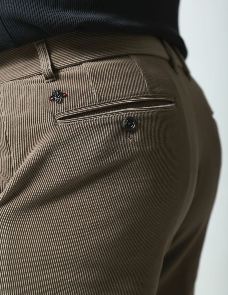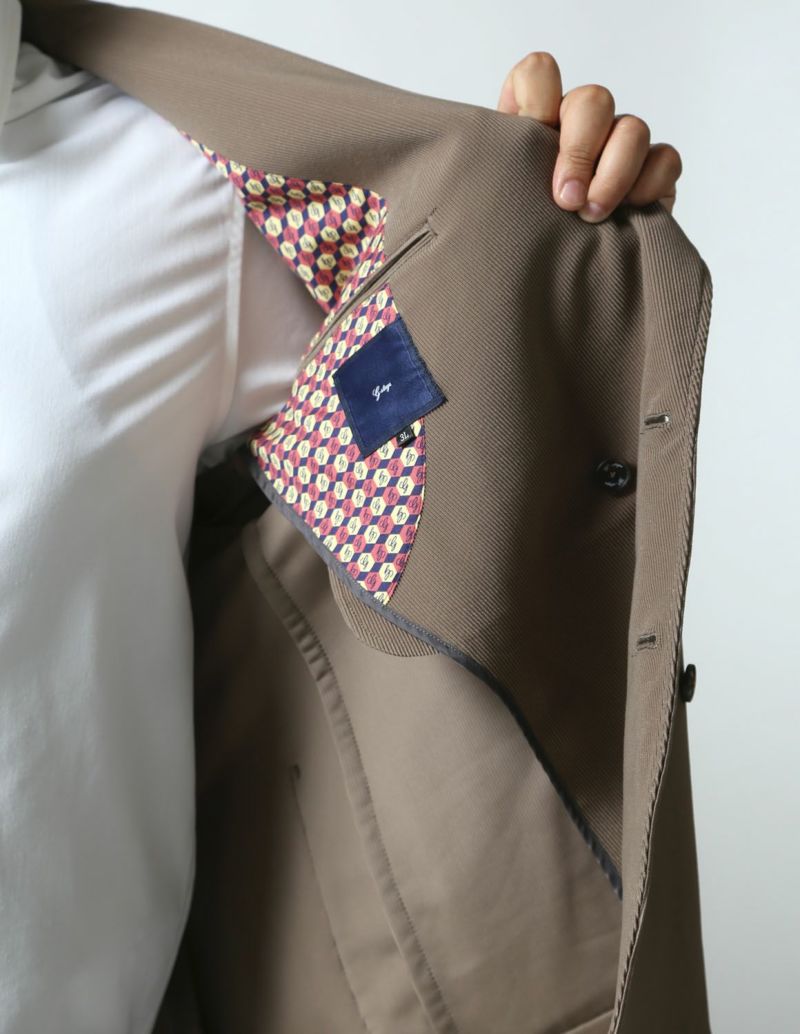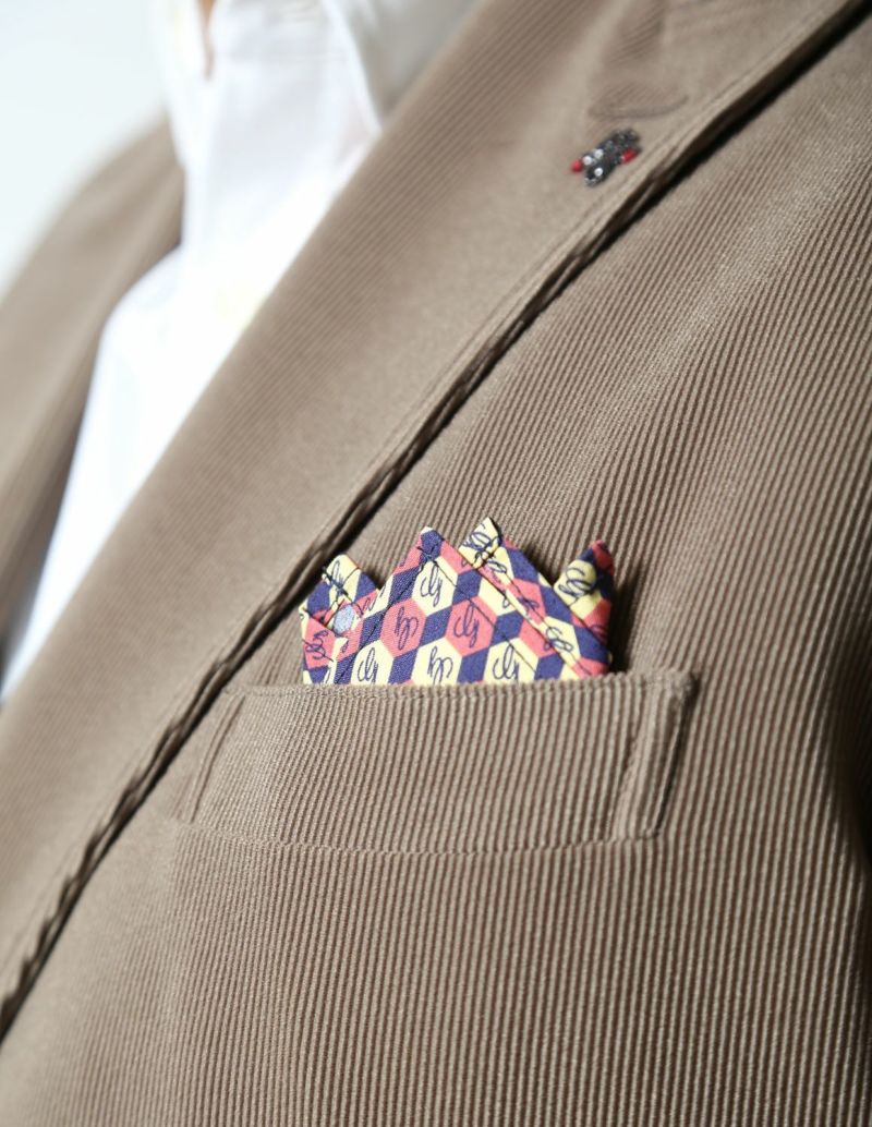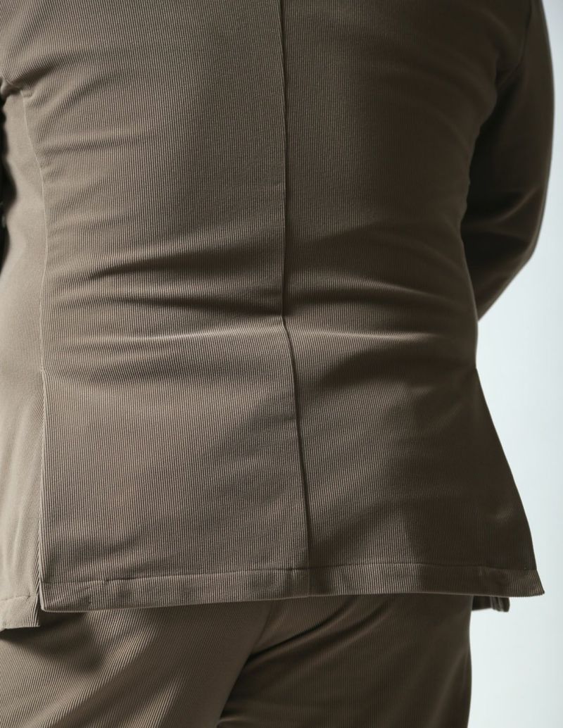 ニット生地でありながら、織物のようにしっかりした素材感が特徴の「トリコットニットコーデュロイ」を使用したセットアップが登場。