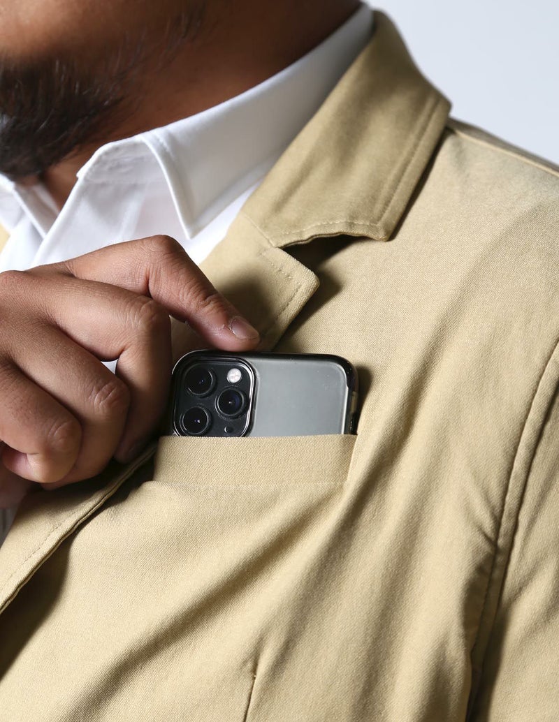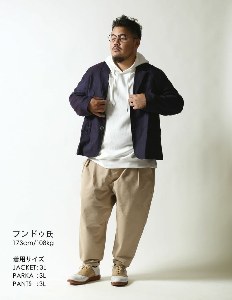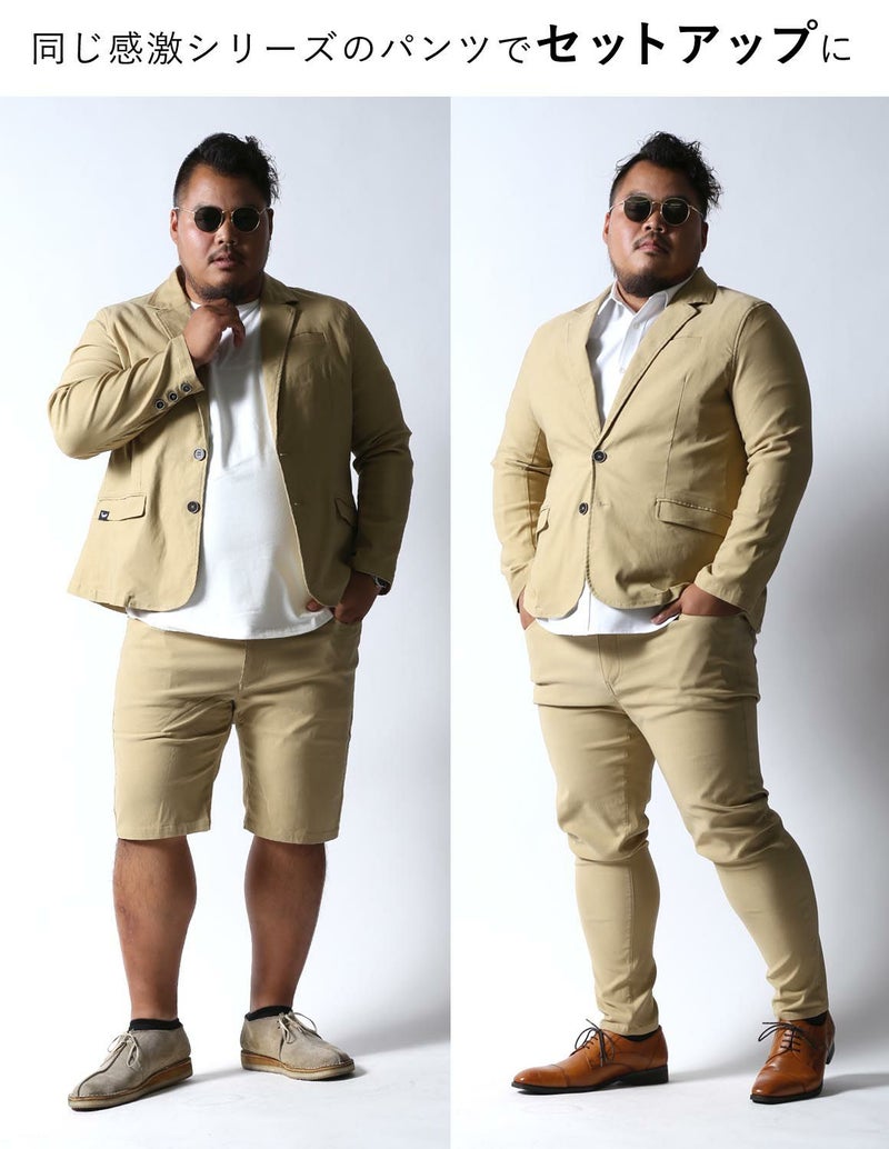 大人気の感鯨パンツと同じ生地を使用しているので、合わせて着てセットアップの完成!もちろん単品でも使え、ビジネスシーンにも使えるシンプルデザインのカジュアルジャケットです。