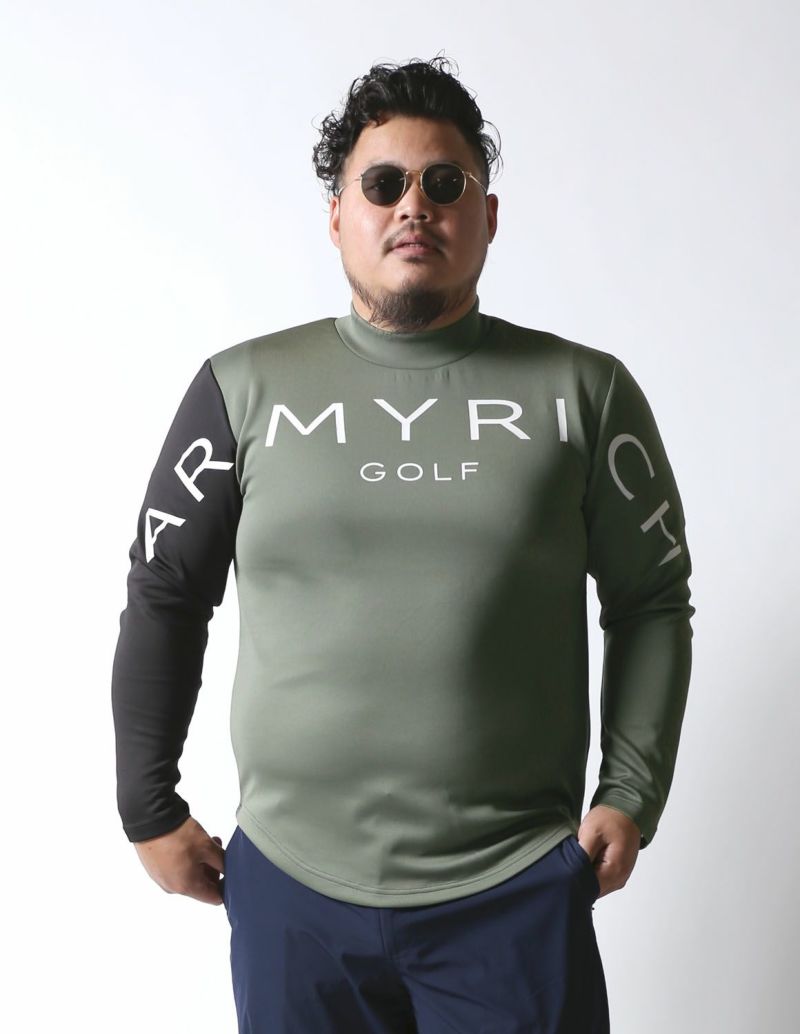 ゴルフとカジュアルを両立させたデザインのBIGプリントの右袖切替モックネックTシャツが登場。