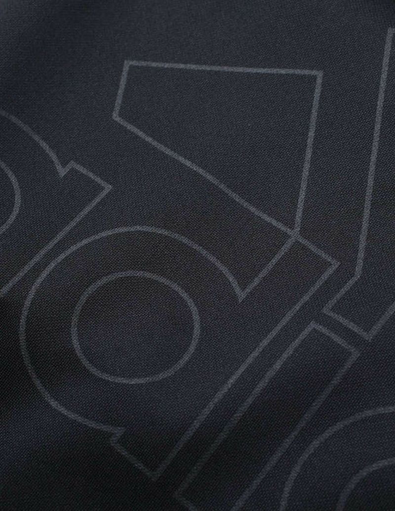 バックに施されたピラミッド型のエキップメントロゴはブラックになじむ色使いがクール。