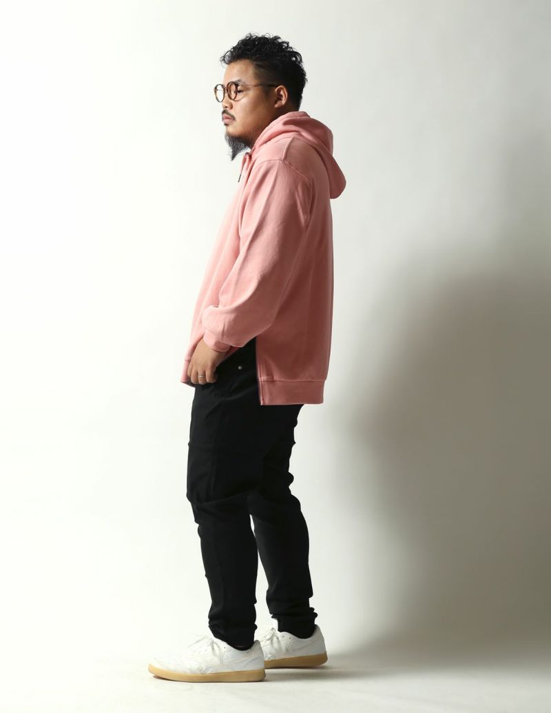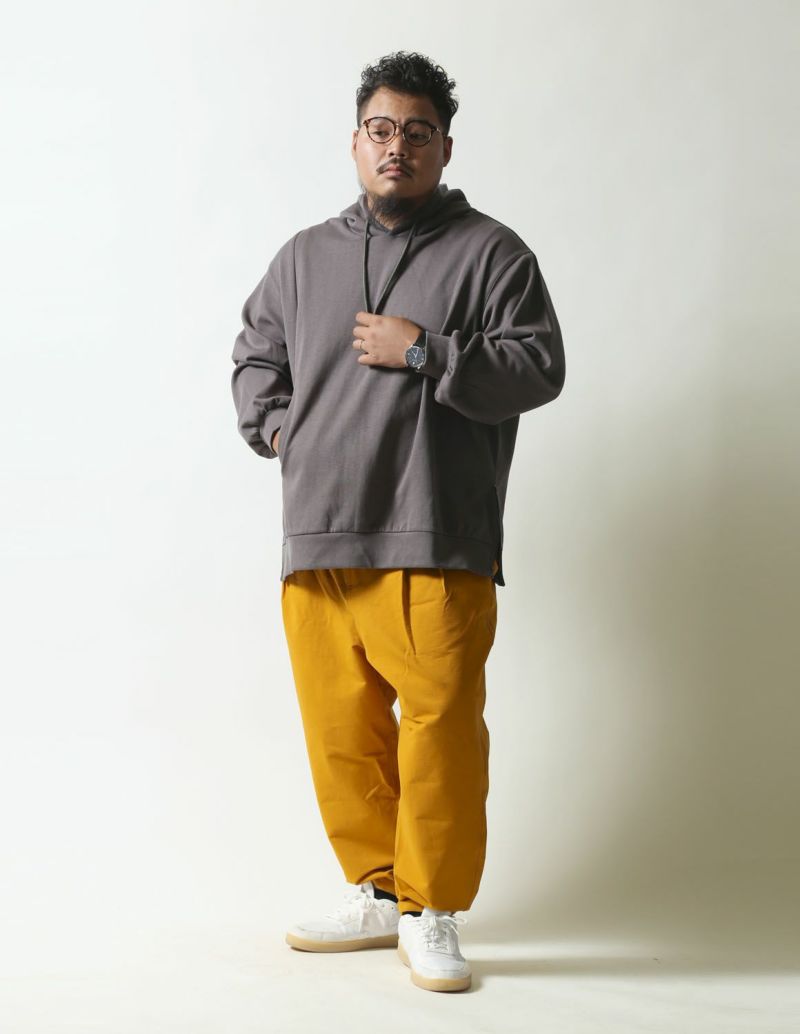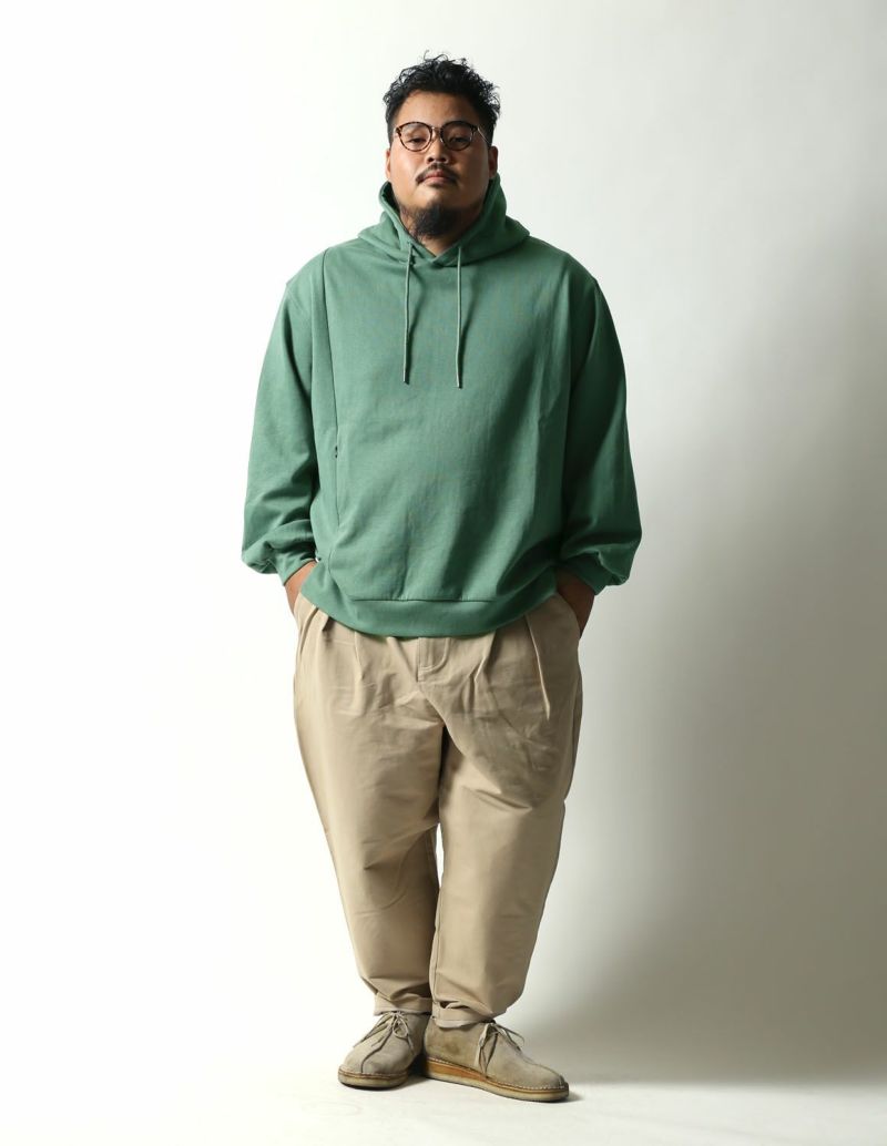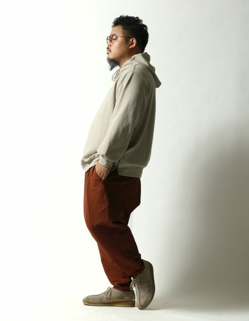 僕は166/112のチビデブで普段は3L〜4Lの服をメインで着ていますが、このパーカーは他メーカーと比べてサイズが大きく自分は2Lがピッタリ(パツパツでは無い)でした。