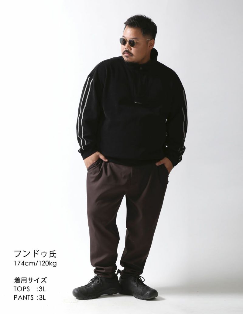ハーフジップは上まで閉じても余裕のあるシルエット。襟が広く開くので着るのも脱ぐのも楽です!