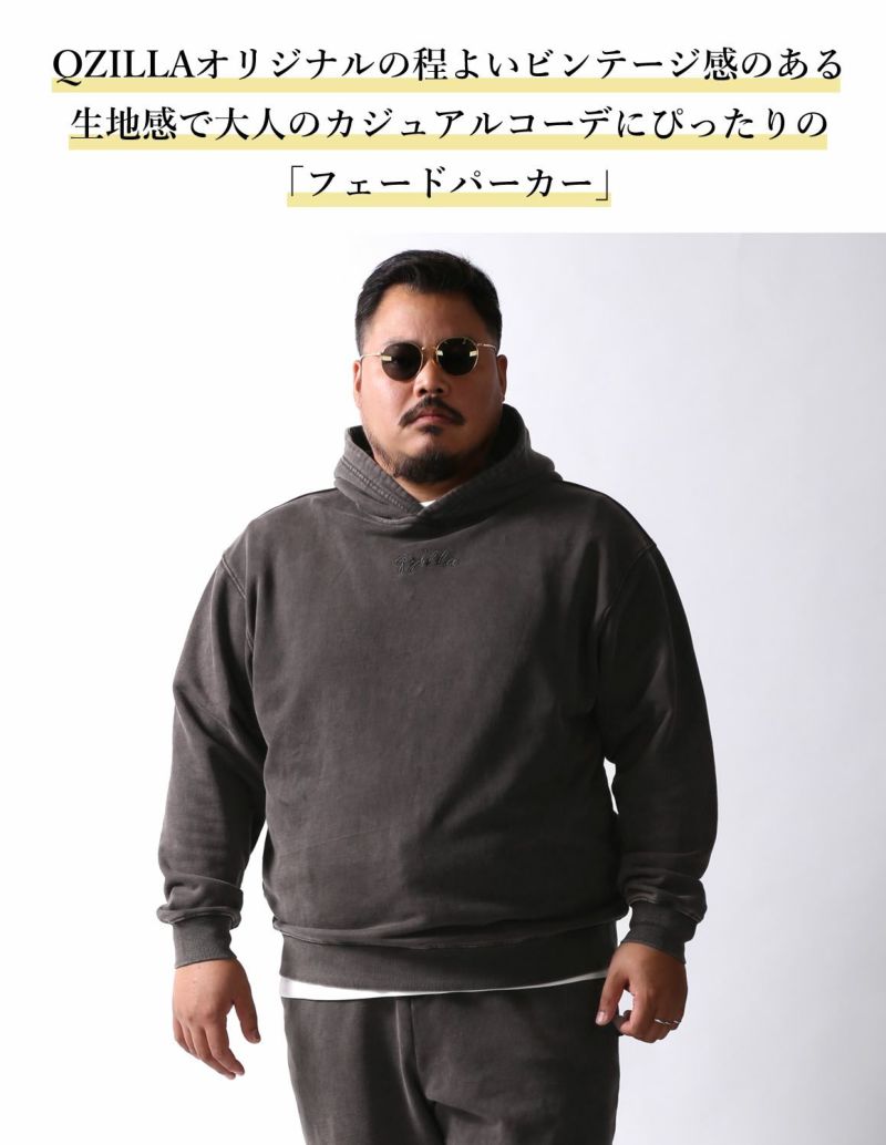 QZILLAオリジナルの程よいビンテージ感のある生地感で大人のカジュアルコーデにぴったりの「フェードパーカー」