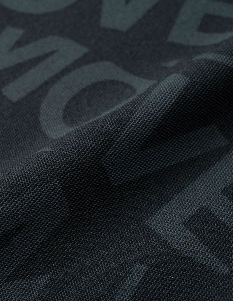 全面に総柄のグラフィックプリント、フロントにパネル切り替えでアクセントをつけたデザイン。