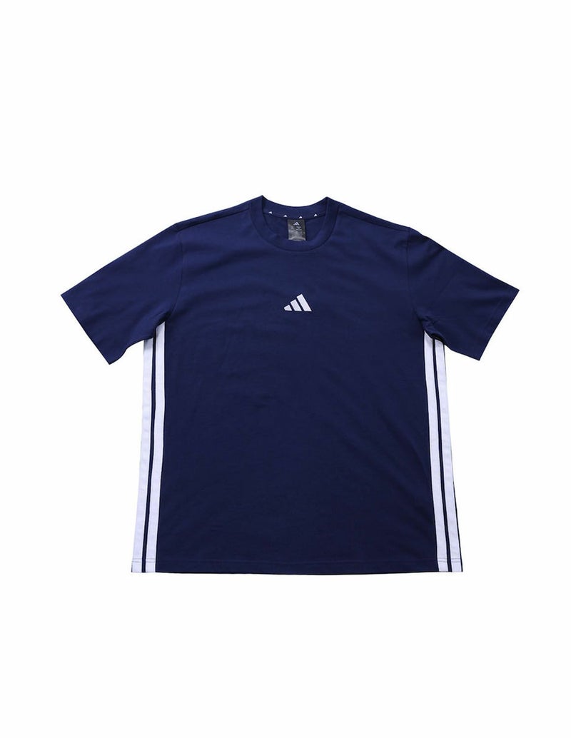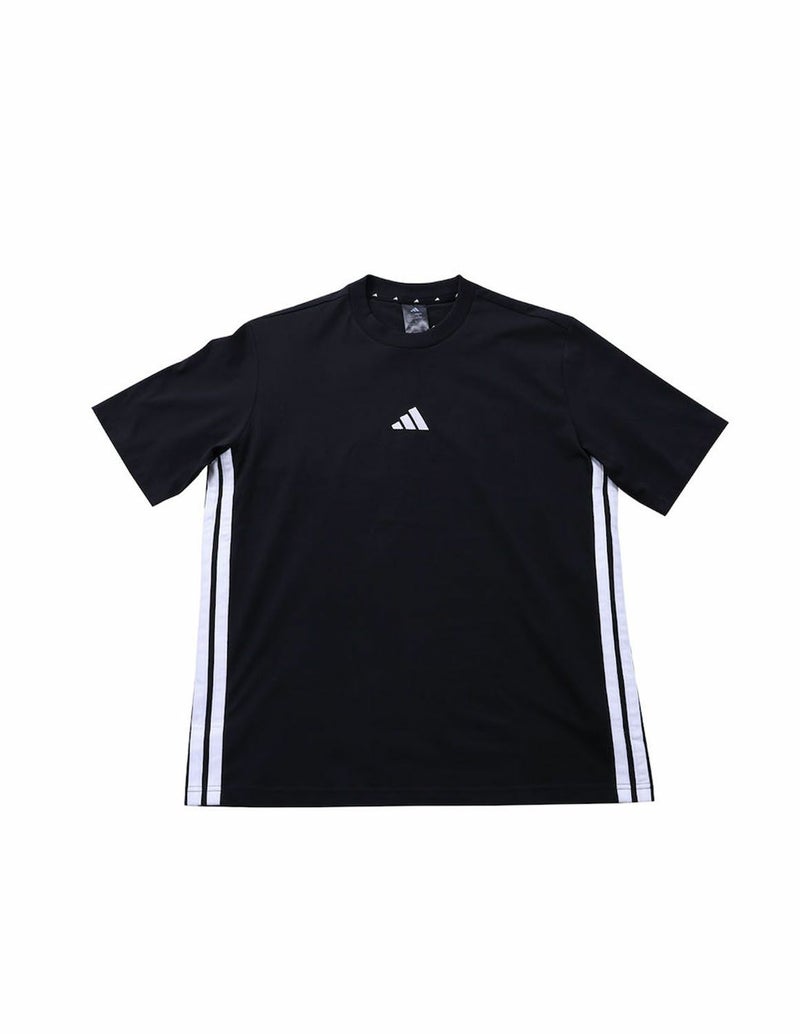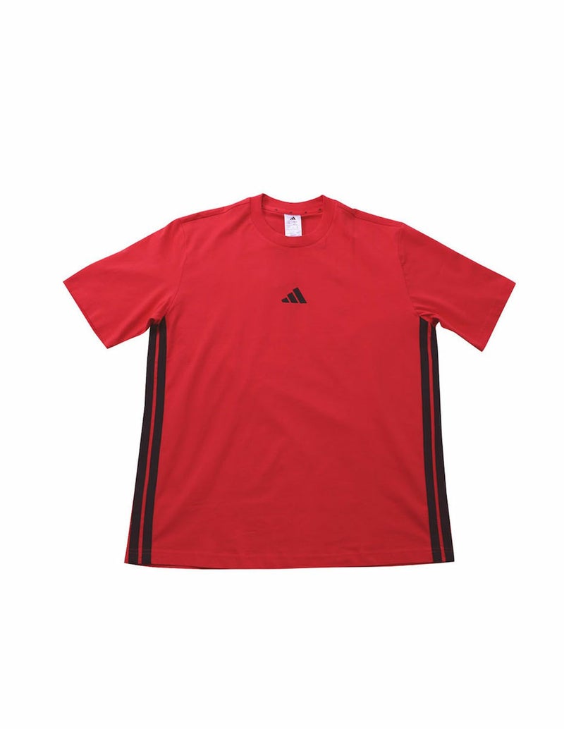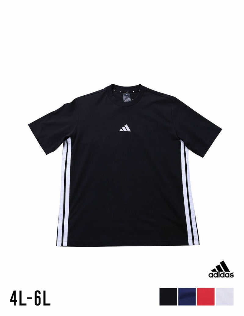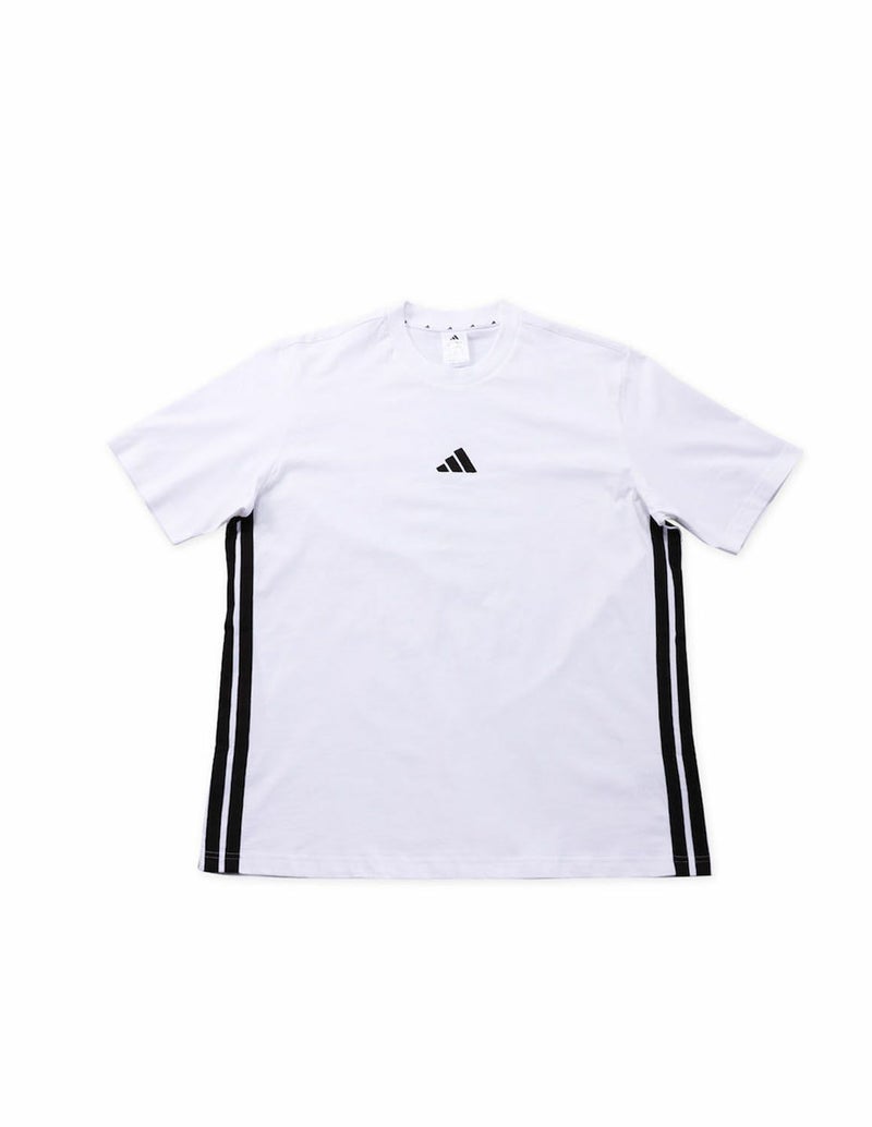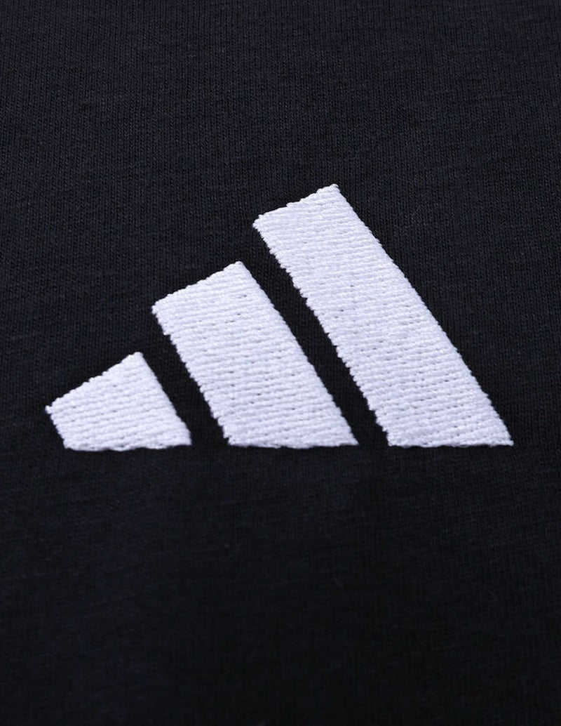 ロゴ刺繍とスリーストライプがアディダスらしいデザインの半袖Tシャツ。