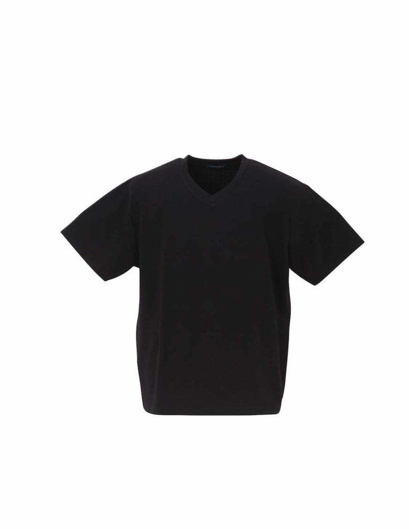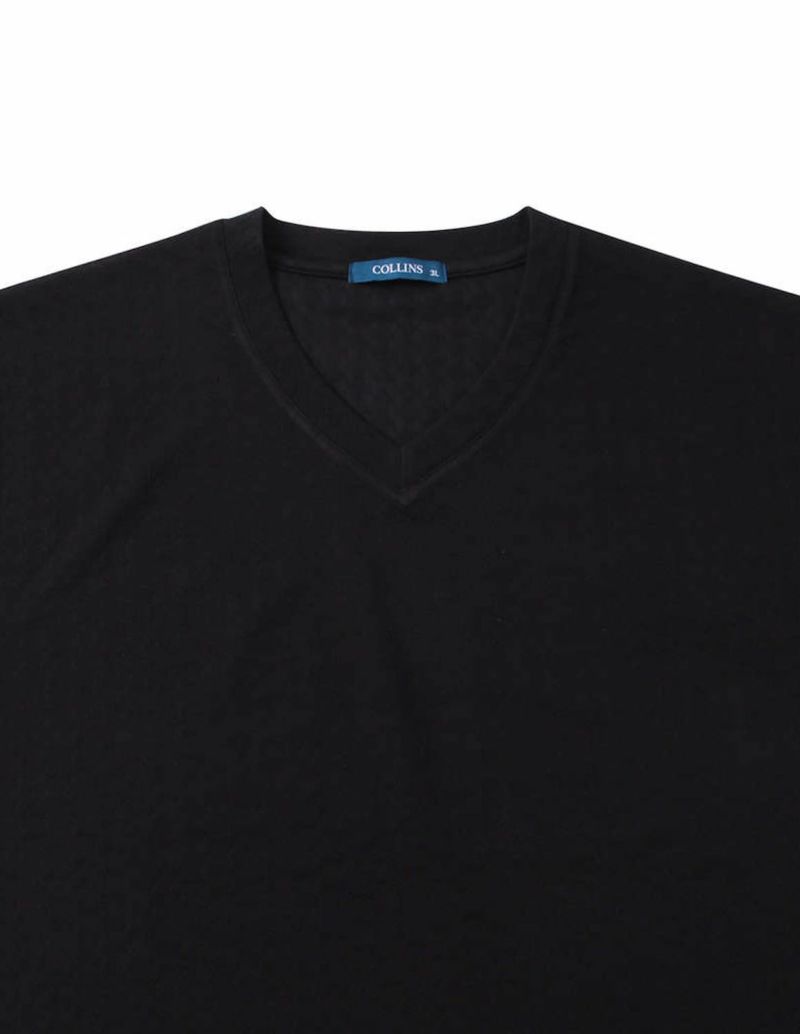 格子柄が立体的に編まれた生地が印象的なジャガードVネック半袖Tシャツが登場。